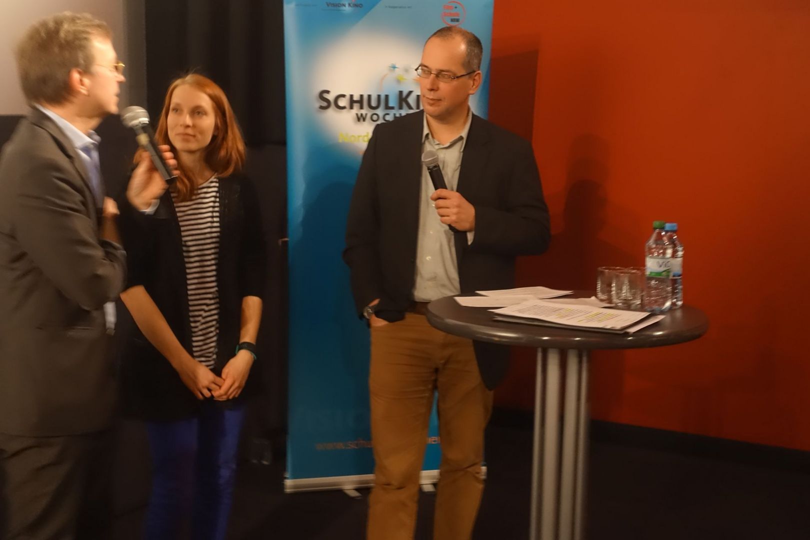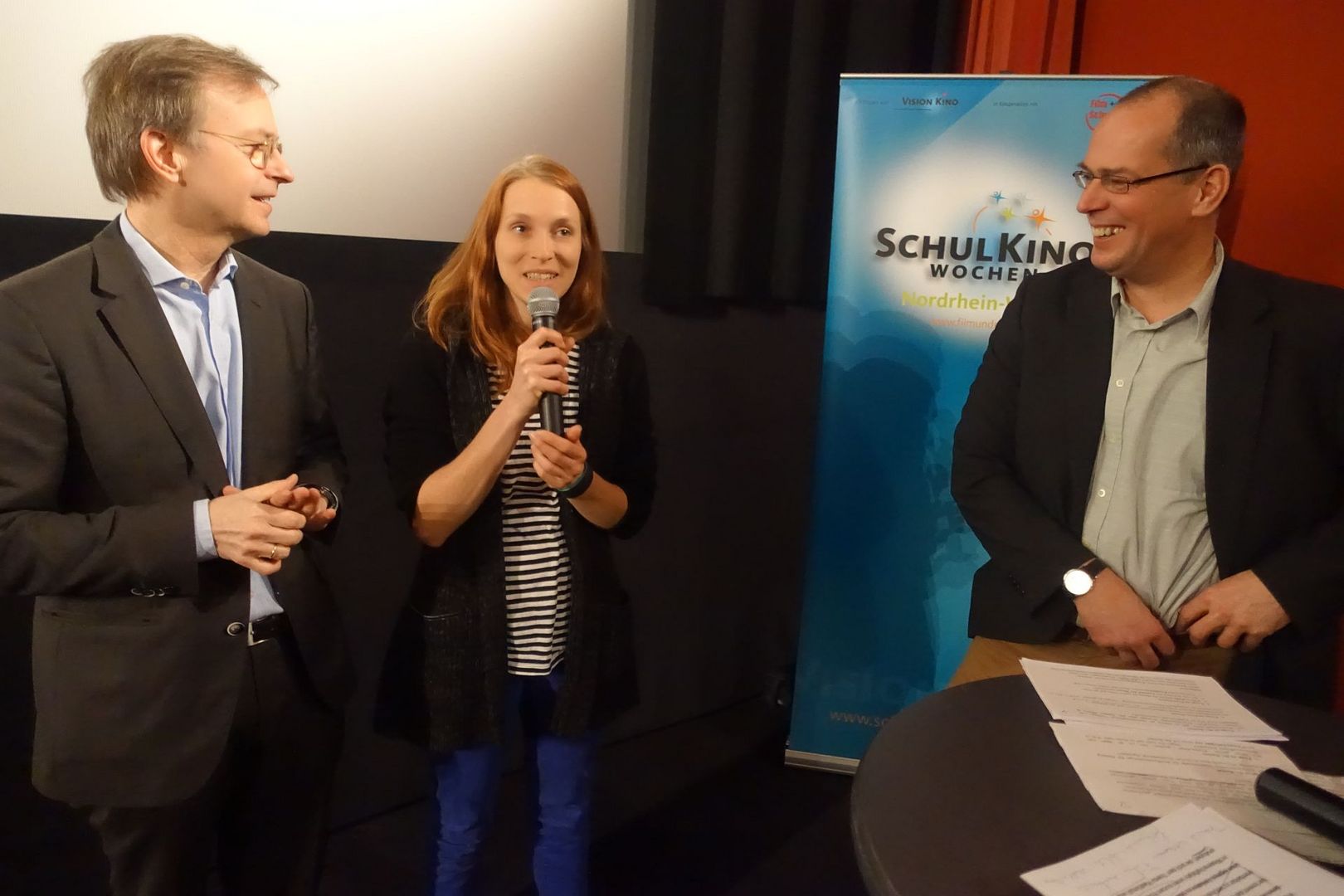 Eine besondere Veranstaltung zum Wissenschaftsjahr 2016*17 – Meere und Ozeane bildete am 8. Februar den Abschluss der SchulKinoWochen NRW 2017. Die Vorstellung des Dokumentarfilms „Zwischen Himmel und Eis“ wurde begleitet durch ein Gespräch mit Thomas Rachel, Mitglied des Deutschen Bundestages und Parlamentarischer Staatssekretär im Bundesministerium für Bildung und Forschung, und der Nachwuchswissenschaftlerin Jana Dömel (Universität Duisburg-Essen), die engagiert mit den Schülerinnen und Schülern über die Themen des Films diskutierten.