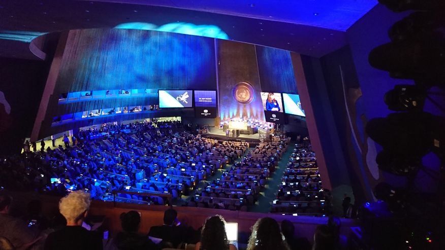 „Wir müssen kurzfristige nationale Interessen beiseitelassen, um eine langfristige globale Katastrophe zu verhindern“, sagte der Generalsekretär der Vereinten Nationen Antonio Guterres zur Eröffnung am 5. Juni 2017 in New York.