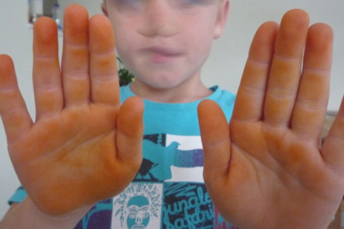 - Bei versehentlicher Berührung und Verfärbung der Hände: Arzt aufsuchen.