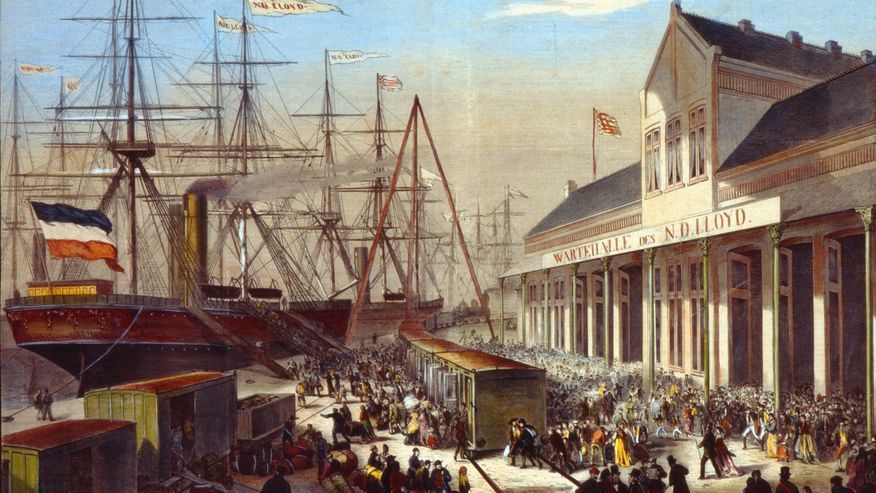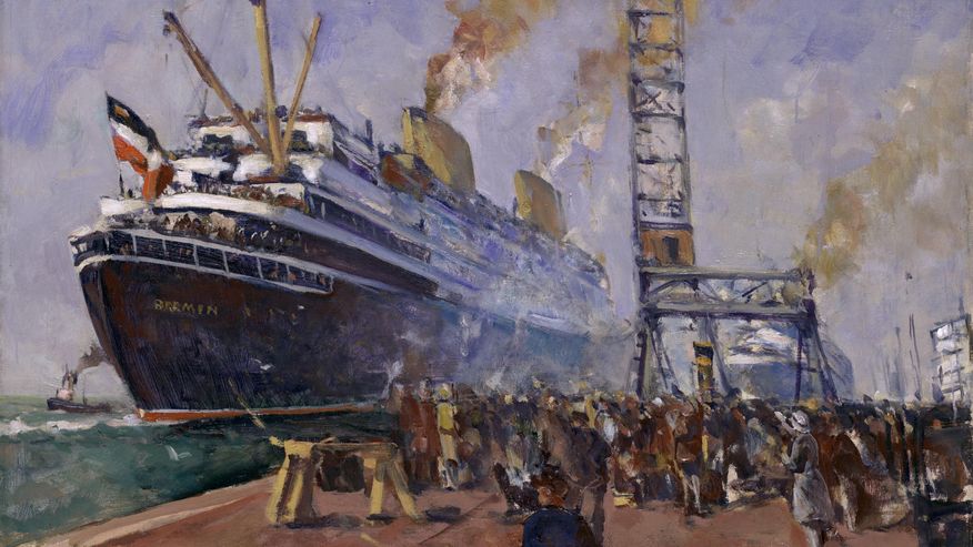 Dabei taucht das Meer nicht immer als eigenständiges Bildthema in der maritimen Kunst auf, wie die Gemälde zum Thema „Auswanderung“ im Bestand des Deutschen Schiffahrtsmuseums (DSM) zeigen.