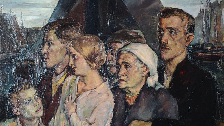 Die immanente Darstellung des Meeres über das Schiffsmotiv wird auch im Gemälde „Auswanderer“ deutlich. Eine Familie im Halbporträt schaut nach links in eine vermeintliche Ferne, die außerhalb des Sichtfeldes des Betrachters liegt. Das eigentliche Thema erschließt sich erst über die im Hintergrund sichtbaren Segel mehrerer Schiffe: Es handelt sich um eine Auswandererfamilie kurz vor der Einschiffung. Während die jungen Leute dem neuen Leben, das mit der Seereise beginnt, sehnsüchtig entgegenblicken, betrauert die ältere Generation den Verlust der alten Heimat.