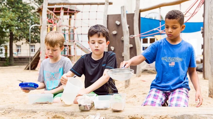 Stellen Sie gemeinsam Dreckwasser her. Die Mädchen und Jungen mischen dazu Erde, kleine Ästchen, Steinchen und verdorrte Blätter in einem Eimer mit Wasser. Betrachten Sie gemeinsam das dreckige Wasser. Was beobachten die Kinder? Schwimmt der Dreck, liegt er am Boden oder hat er sich im Wasser verteilt? Fragen Sie, wie die Mädchen und Jungen den Dreck aus dem Wasser wieder herausholen würden. Lässt sich die verteilte Erde im Wasser mit einem Löffel herausheben? Gelingt es, das Wasser so abzugießen, dass die Erde am Boden des Eimers verbleibt? Lassen sich die Schwebeteile herausfiltern? Untersuchen Sie mit den Kindern verschiedene Siebe und Filterpapiere. Was fällt den Kindern auf? Die Mädchen und Jungen reinigen jeweils einen kleinen Teil des Dreckwassers mit den unterschiedlichen Sieben und Filterpapieren. Beobachten Sie gemeinsam die Durchlaufgeschwindigkeit und vergleichen Sie das Ergebnis der Trennung.