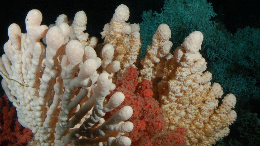 Wie ist das angesichts von kühlen Temperaturen und in der in diesen Meerestiefen herrschenden Dunkelheit möglich? Während viele Flachwasserkorallen in den Tropen in Symbiose mit lichthungrigen Algen leben, ernähren sich Kaltwasserkorallen ausschließlich von winzigen Krebse und Algen, die sie mit ihren Tentakeln aus den bodennahen Meeresströmungen fangen. Dabei profitieren die Korallen in der Porcupine Seabight von lokalen Besonderheiten: Denn am nordosteuropäischen Kontinentalrand trifft sehr salzhaltiges Wasser, das aus dem Mittelmeer stammt, auf weniger salzhaltiges Nordatlantikwasser. Wegen des hohen Salzgehaltes schiebt sich das Mittelmeer- komplett unter das spezifisch leichtere Nordatlantikwasser. Die Kaltwasserriffe bilden sich direkt an der Grenze der beiden Wassermassen. Nur dort reichern sich die Nahrungspartikel an und erzeugen somit optimale Bedingungen für die Korallen.