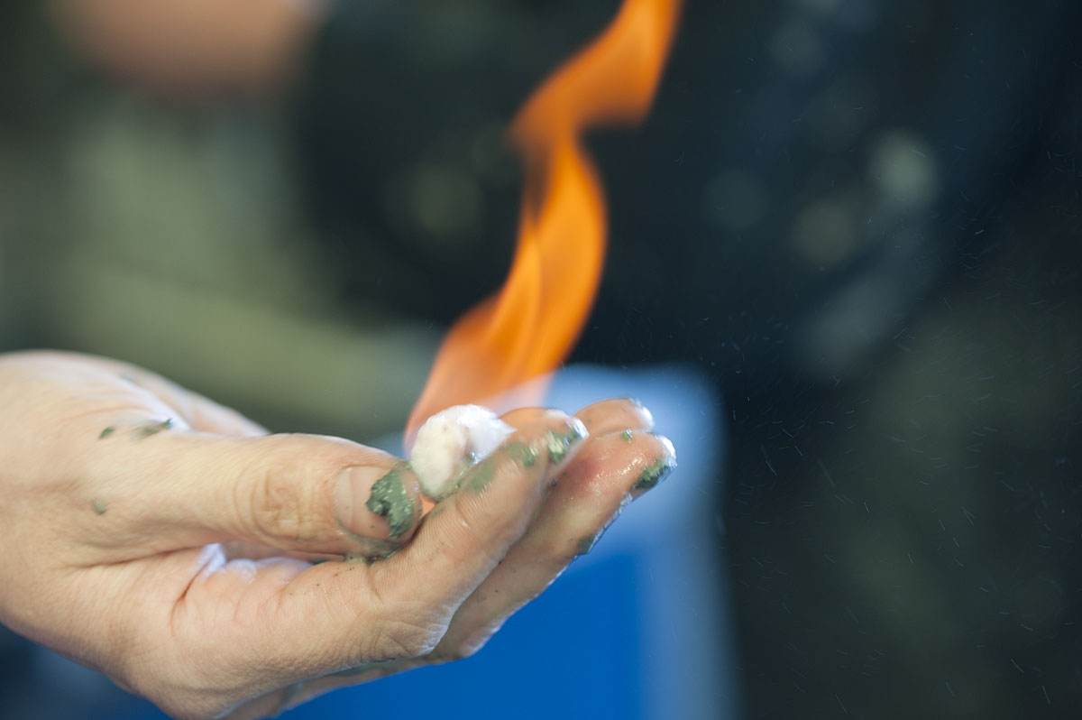 Auf der 57. Expedition des Forschungsschiffs MARIA S. MERIAN dreht sich alles um Methanhydrat. Das ist eine feste, eisähnliche Verbindung aus Methan und Wasser, die nur bei tiefen Temperaturen und hohem Druck stabil ist. In einem Kubikmeter Methanhydrat sind bis zu 164 Kubikmeter Methan eingeschlossen. Methanhydrat bildet also eine sehr kompakte Struktur mit einem hohen Anteil an Methan.