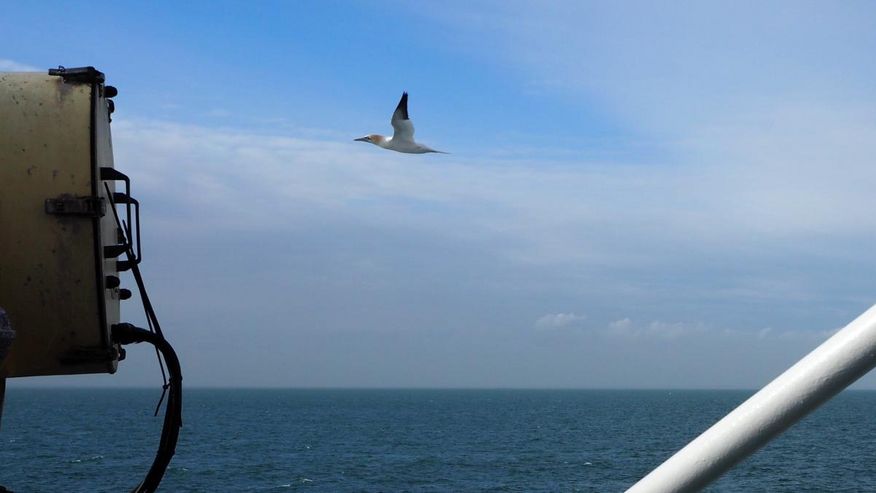 Jetzt wird’s eng. Begleitet von Basstölpeln, Möwen und zahlreichen Schiffen durchfahren wir zügig und bei besten Bedingungen die Straße von Dover und den Ärmelkanal Richtung Westen. Doch die schnelle Fahrt reicht nicht aus: Wie ein Korken auf der Flasche hat sich ein Sturmtief auf das westliche Ende des Ärmelkanals gesetzt. Daran gibt es kein Vorbeikommen. So bleibt uns nur, den Bug in den Wind zu stellen und den Orkan mit seinen stattlichen Wellen abzuwettern. Das kostet uns wertvolle Zeit, und auf dem Atlantik ziehen bereits wie auf einer Perlenschnur die nächsten Sturmtiefs heran. Um dem Wetter auszuweichen, entscheidet sich Kapitän Janßen für eine südliche Route über die Azoren.
