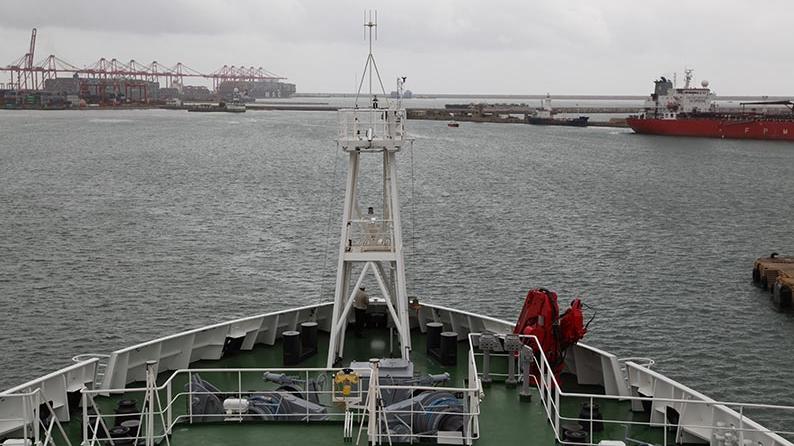 Tief hängen die grauen Wolken im Hafen von Colombo, Sri Lanka. Die Mittagsluft ist feucht und ölgeschwängert. Das Thermometer zeigt 30 Grad im Schatten an. Wer aus dem heruntergekühlten Hangar des Forschungsschiffes „SONNE“ auf das Arbeitsdeck tritt, prallt gegen eine heiße, unsichtbare Wand. Es ist der frühe Nachmittag des 24. August 2017. Das Schiff liegt fertig beladen am Kai. Gespannte und zugleich zufriedene Forscher-Gesichter blicken auf den diesigen Horizont. In Kürze betritt der Lotse das Schiff. Die Leinen werden gelöst und das Schiff sticht in See.