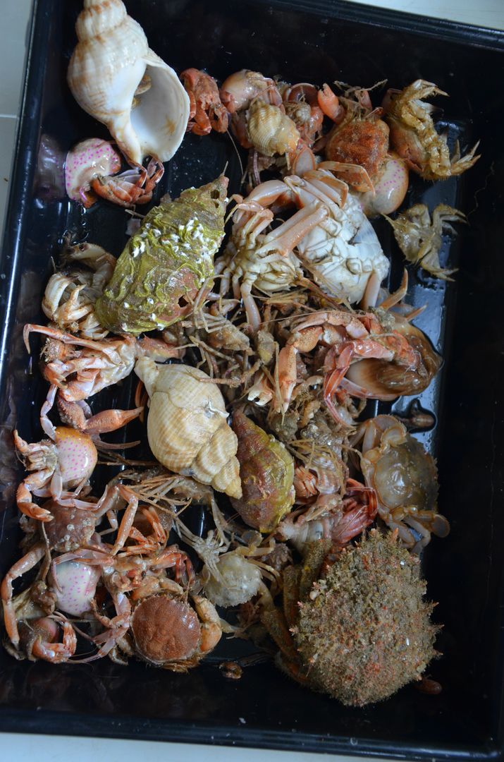 Im Lauf unserer Reise wurde deutlich: Vom flacheren zum tieferen Wasser nahm die Artenvielfalt zu. Die wenigsten Arten haben wir an den flachen Stationen in der Deutschen Bucht gefunden, die durch Weichsedimente wie Sand und Schlick geprägt sind. Die höchste Artenvielfalt gab es an den tieferen Stationen im Englischen Kanal, mit einer höheren Lebensraumvielfalt durch zum Teil felsigen Untergrund oder mit großen Steinen übersäten Sandflächen. Die Bestimmung der Arten stellen nicht nur die Studenten vor eine schwierige Aufgabe, auch die Lehrenden sind bei den letzten sehr artenreichen Stationen außergewöhnlich gefordert. Alle Arten wurden vermessen und gewogen. Zusätzlich wurden Experimente mit Kleinstkrebsen aus der Wassersäule zur Ermittlung der Produktivität durchgeführt. Insgesamt wurden während der Woche auf See über 160 Fisch- und Bodentierarten gefangen.