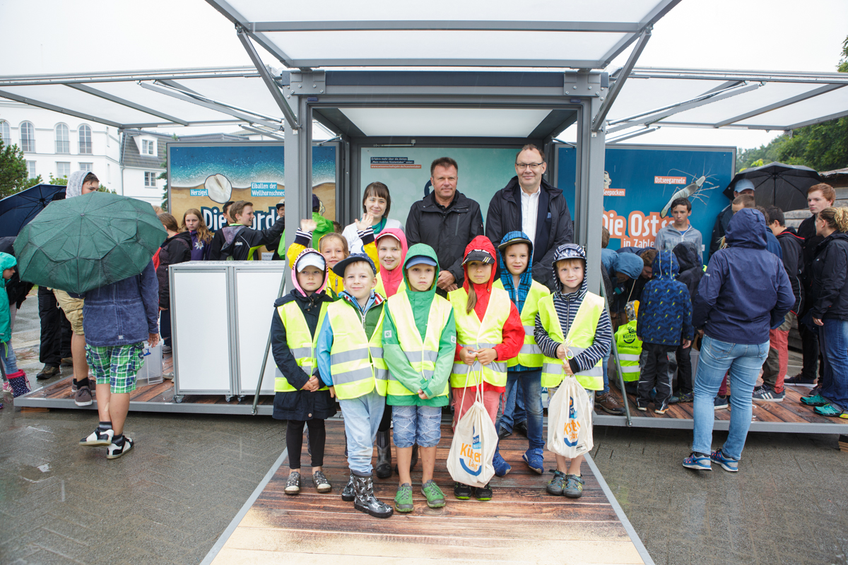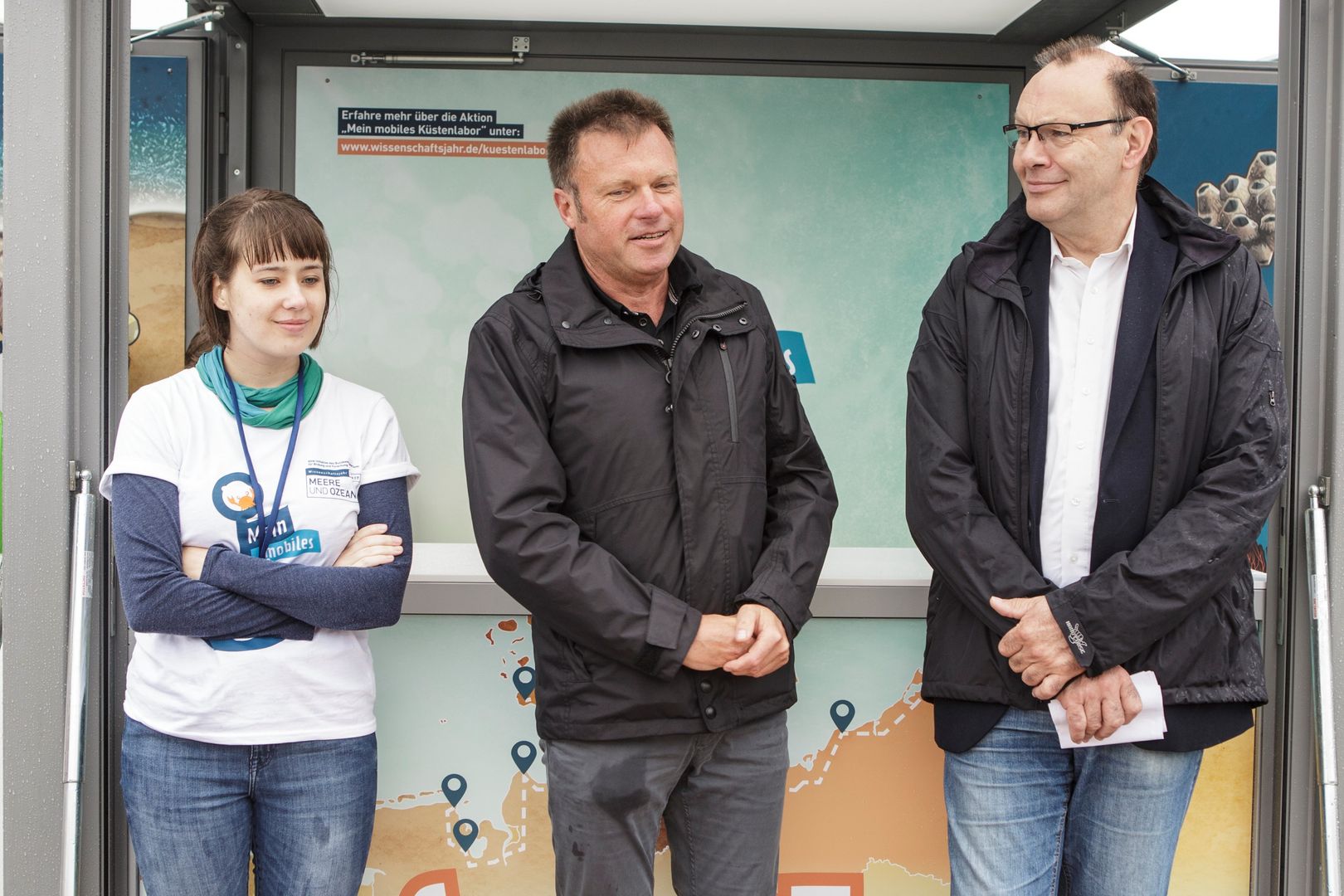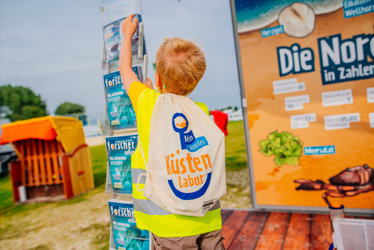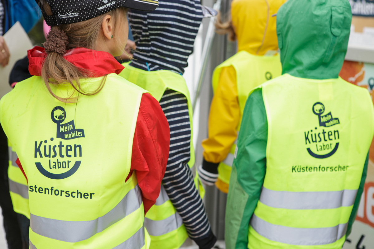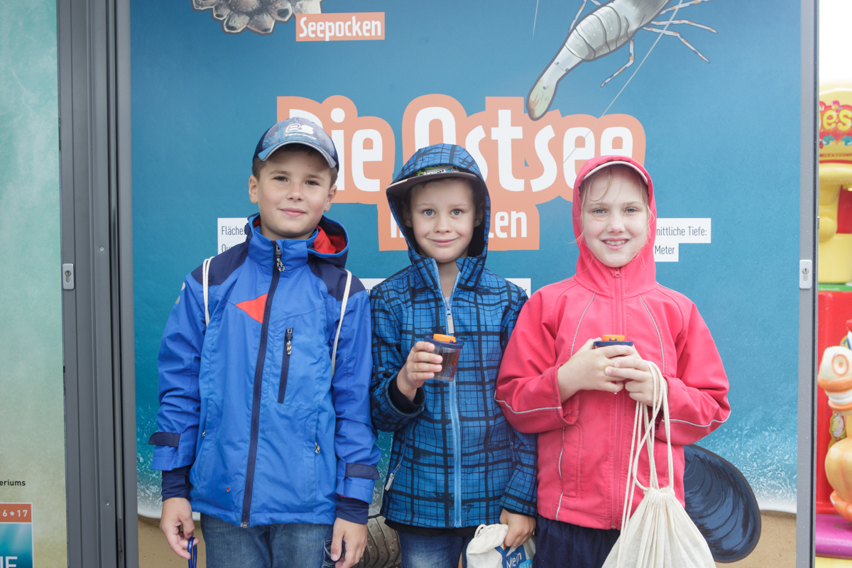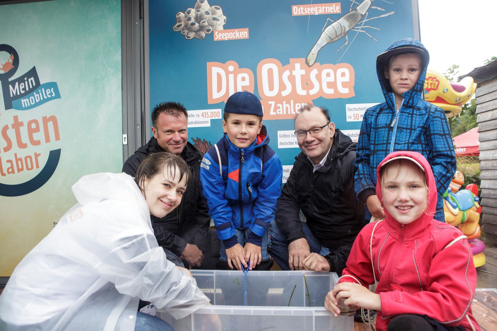 Besonderes Highlight im Jahr 2017 war die SommerTour vom 25. Juni bis zum 4. August. An acht Stränden entlang der Nord- und Ostsee machte die Aktion „Mein mobiles Küstenlabor“ Halt. Unter fachkundiger Anleitung gingen fast 1.000 Kinder auf abenteuerreiche Strandexpeditionen und fischten nicht nur kleine Lebewesen, Muschelschalen oder anderes Strandgut mit dem Kescher aus Wasser und Watt, sondern nahmen alles auch direkt im Becher unter die Lupe. Wie viele Beine hat eine Ostseegarnele eigentlich genau? Kann man Meersalat tatsächlich essen? Bei verschiedenen Mitmachaktionen erhielten die Kinder Antworten auf spannende Fragen rund ums Meer.
