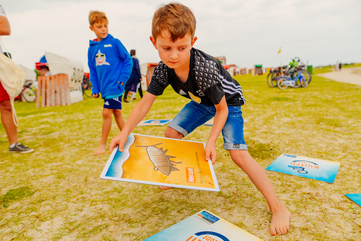 Immer dabei: das mobile Küstenlabor, das die Kinder bei mehr als 150 Partnern aus Tourismus, Umweltbildung und Forschung kostenfrei abholen konnten. Auch Andrea Schlichte und ihr Team von der Tourist-Information in Wenningstedt-Braderup auf Sylt gaben die Forschersets aus, mit denen unter anderem flinke Strandkrabben oder winzige Meerasseln erforscht werden konnten: „Das Küstenlabor mit Kescher, Becherlupe und Forschungsanleitung hat bei unseren kleinen Gästen reißenden Absatz gefunden, wirklich eine tolle Idee!“