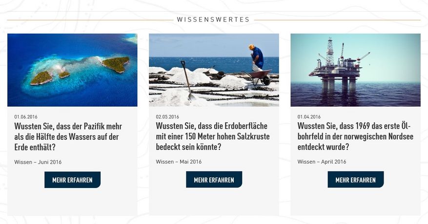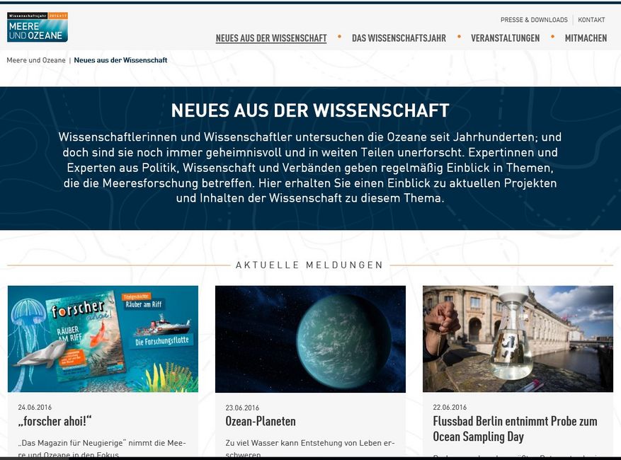 Unter den Aktuellen Meldungen stehen spannende Informationen über Meere und Ozeane.