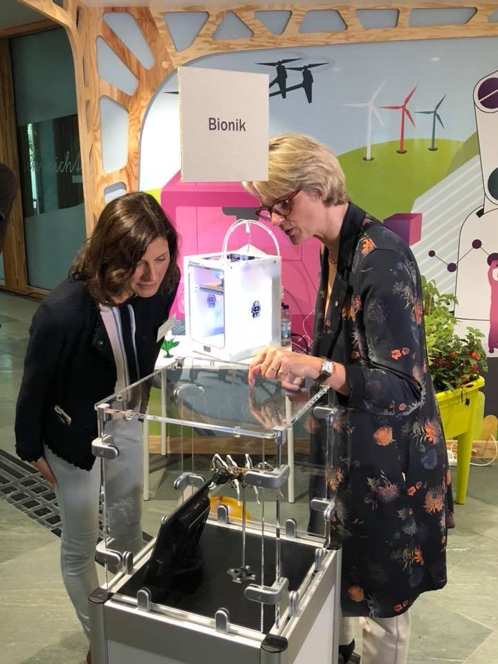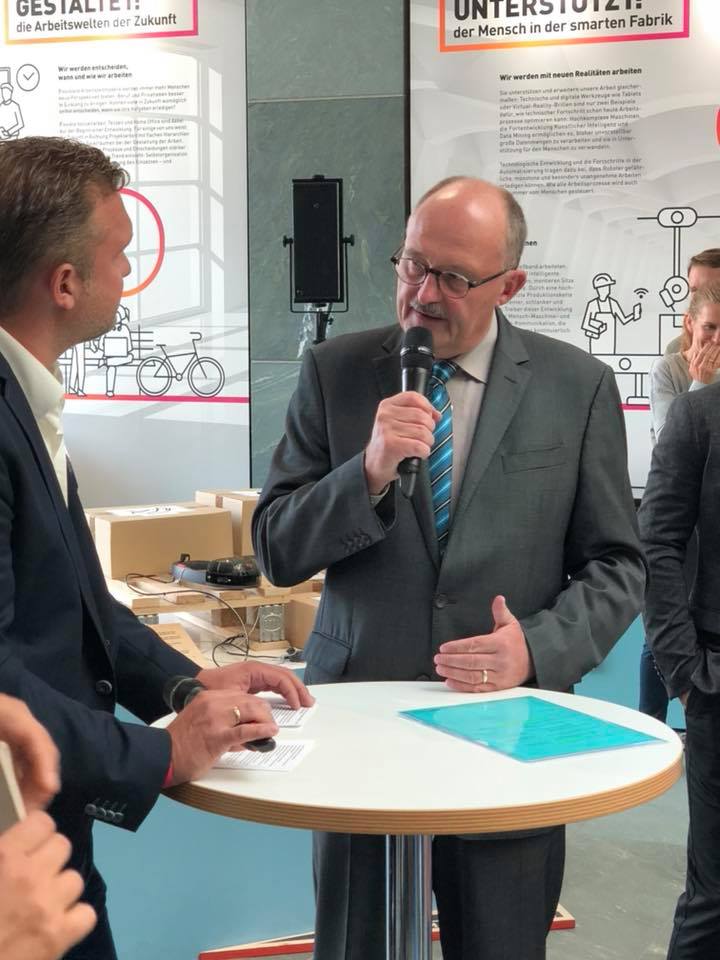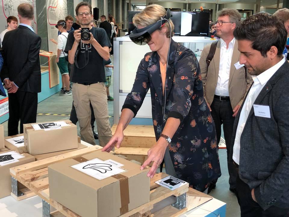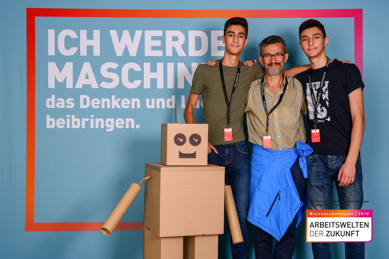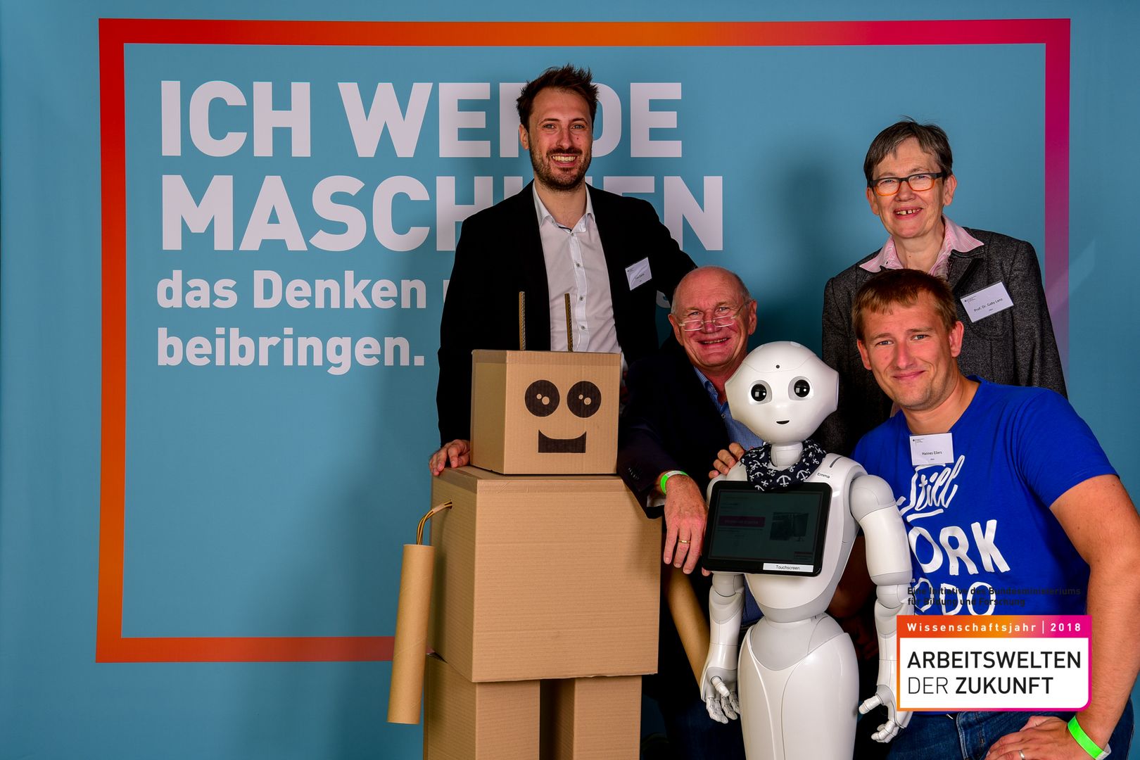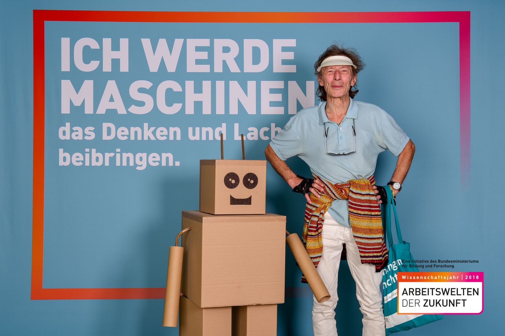 Auch das Wissenschaftsjahr 2018 war vor Ort und bot spannende Einblicke in die Arbeitswelten der Zukunft. Ob beim Kistenstapeln mithilfe einer Datenbrille oder bei der Erstellung eines digitalen Jobprofils von der Künstliche-Intelligenz-Berufs-Agentur (KIBA) – die Besucherinnen und Besucher konnten im BMBF schon heute erleben, wie wir in Zukunft arbeiten werden. Vor allem die beiden interaktiven Roboter Emma und Robbie zogen viele Blicke auf sich – sie sollen in Zukunft die Fachkräfte in der Altenpflege entlasten. Mit der Karaoke-Station der Mitsing-Aktion „Klingt nach Teamwork“ kam auch der Spaß nicht zu kurz.