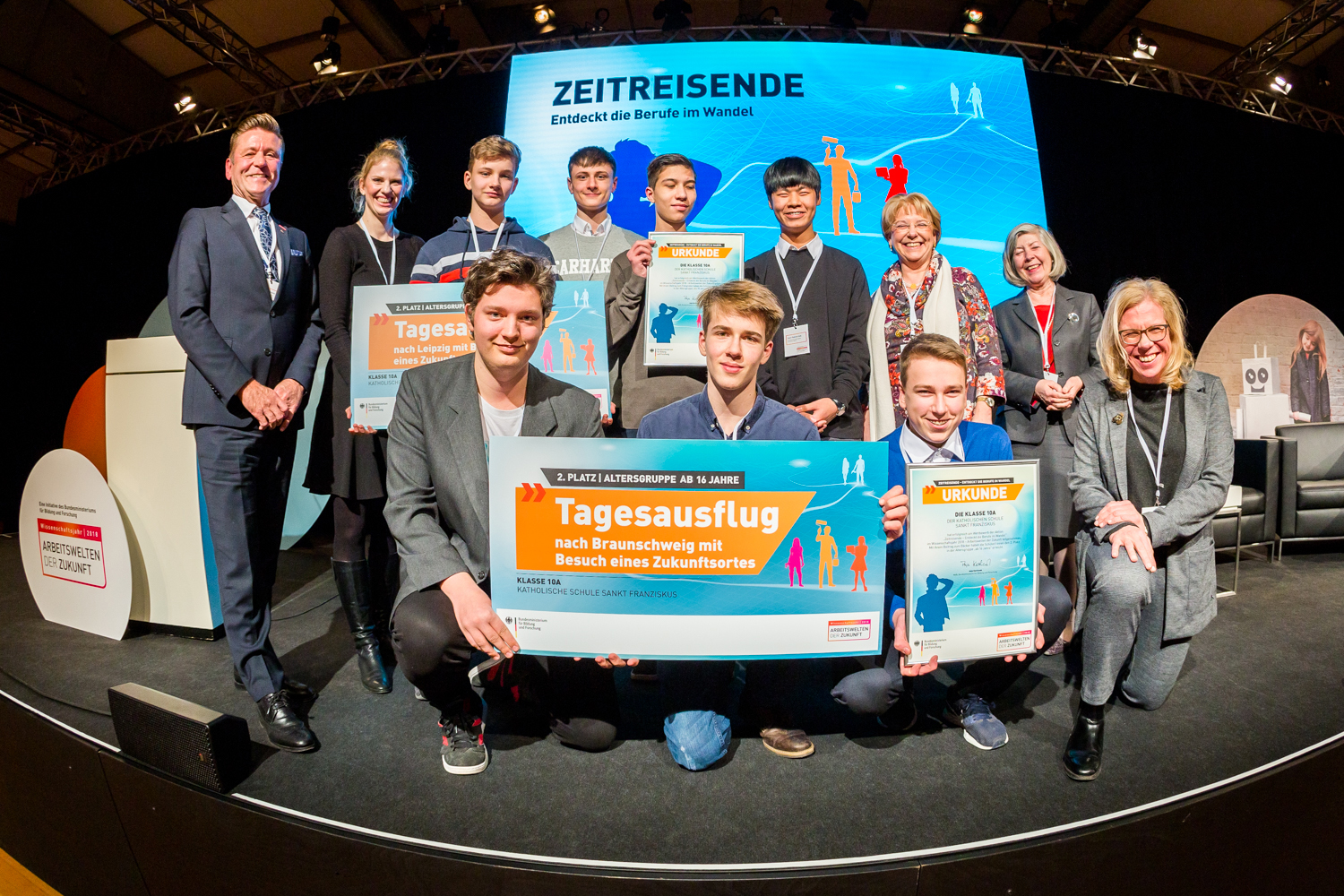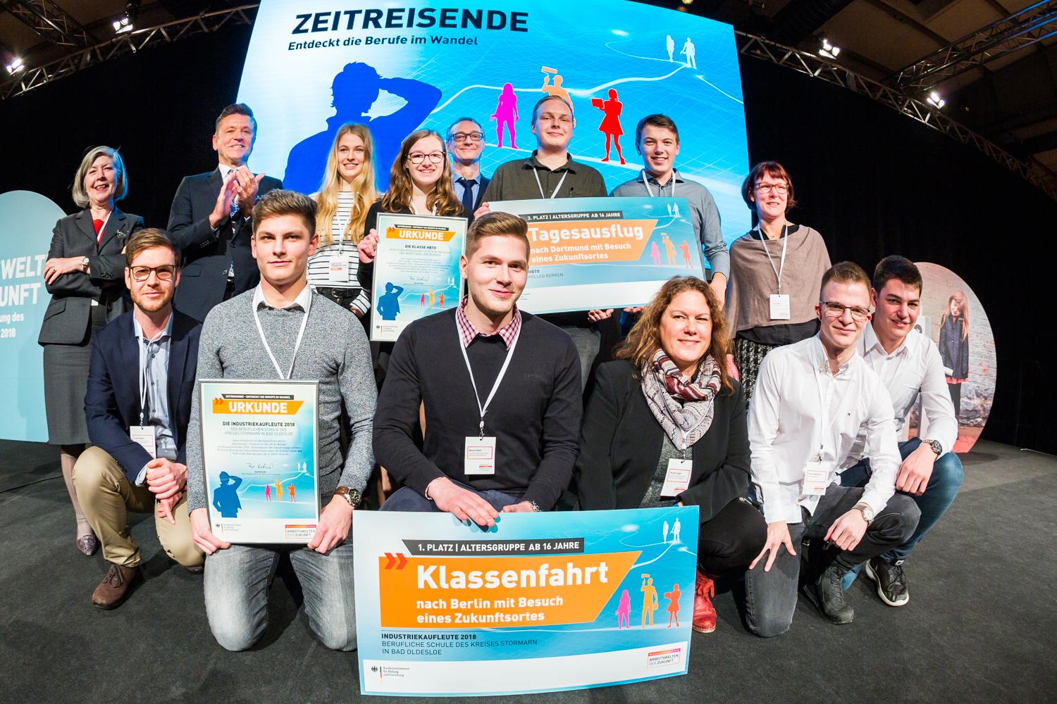 Bei der Jugendaktion „Zeitreisende – Entdeckt die Berufe im Wandel“ setzten sich über 300 Jugendliche auf kreative Weise mit den Arbeitswelten der Vergangenheit, Gegenwart und Zukunft auseinander. In ihren Wettbewerbsbeiträgen zeigten sie die Veränderungen von Berufen wie Bäckerin, Kfz-Mechaniker oder Schreiner.