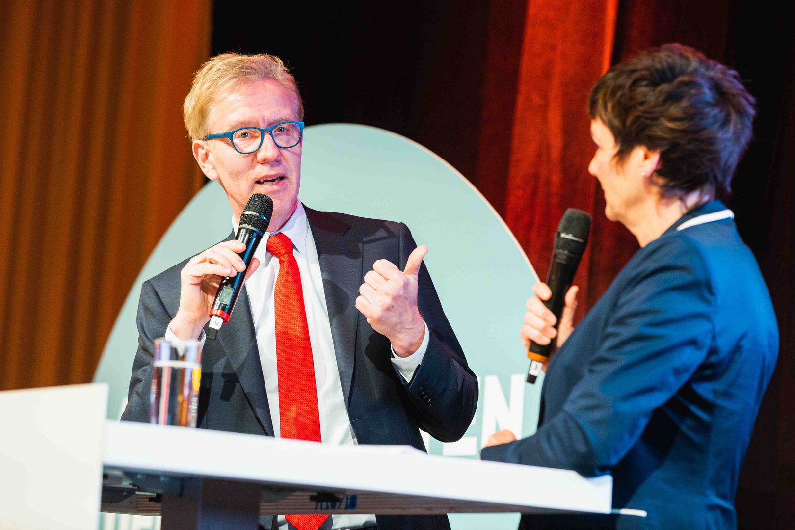 Der Wandel durch Digitalisierung und Künstliche Intelligenz war auch Thema der Diskussionsreihe „Arbeits-Früh-Stücke“ in Berlin, München und Bonn. Hier tauschten sich Expertinnen und Experten aus Politik, Wissenschaft und Wirtschaft mit Interessierten u.a. zu Themen wie Chancengleichheit und Frauen in technischen Berufen aus.