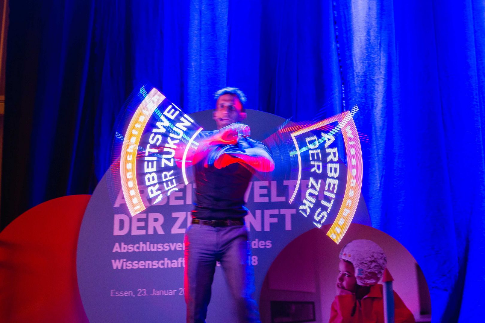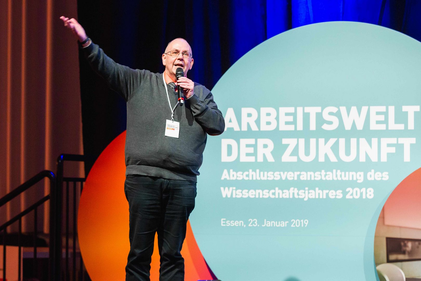 Für viele Jugendliche, Auszubildende, Studierende und auch Arbeitnehmerinnen und -nehmer sind die Arbeitswelten der Zukunft nur bedingt greifbar. Wie wird meine Arbeit in zehn Jahren aussehen? In welchem Maße wird Künstliche Intelligenz meinen Arbeitsalltag bestimmen? Im Wissenschaftsjahr 2018 wurden viele Fragen gestellt, diskutiert – und beantwortet.