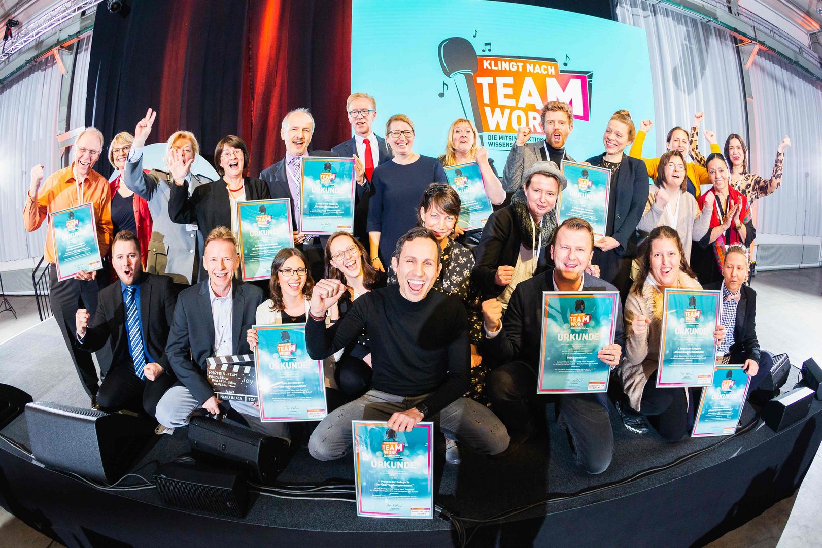 Und an der bundesweiten Mitmachaktion „Klingt nach Teamwork“ beteiligten sich rund 60 Teams aus 14 Bundesländern. Insgesamt 4.580 Kolleginnen und Kollegen haben gemeinsam Lieder im Arbeitskontext zum Besten gegeben und damit unterstrichen, wieviel Spaß die Arbeit in einem facettenreichen und motivierten Team macht.