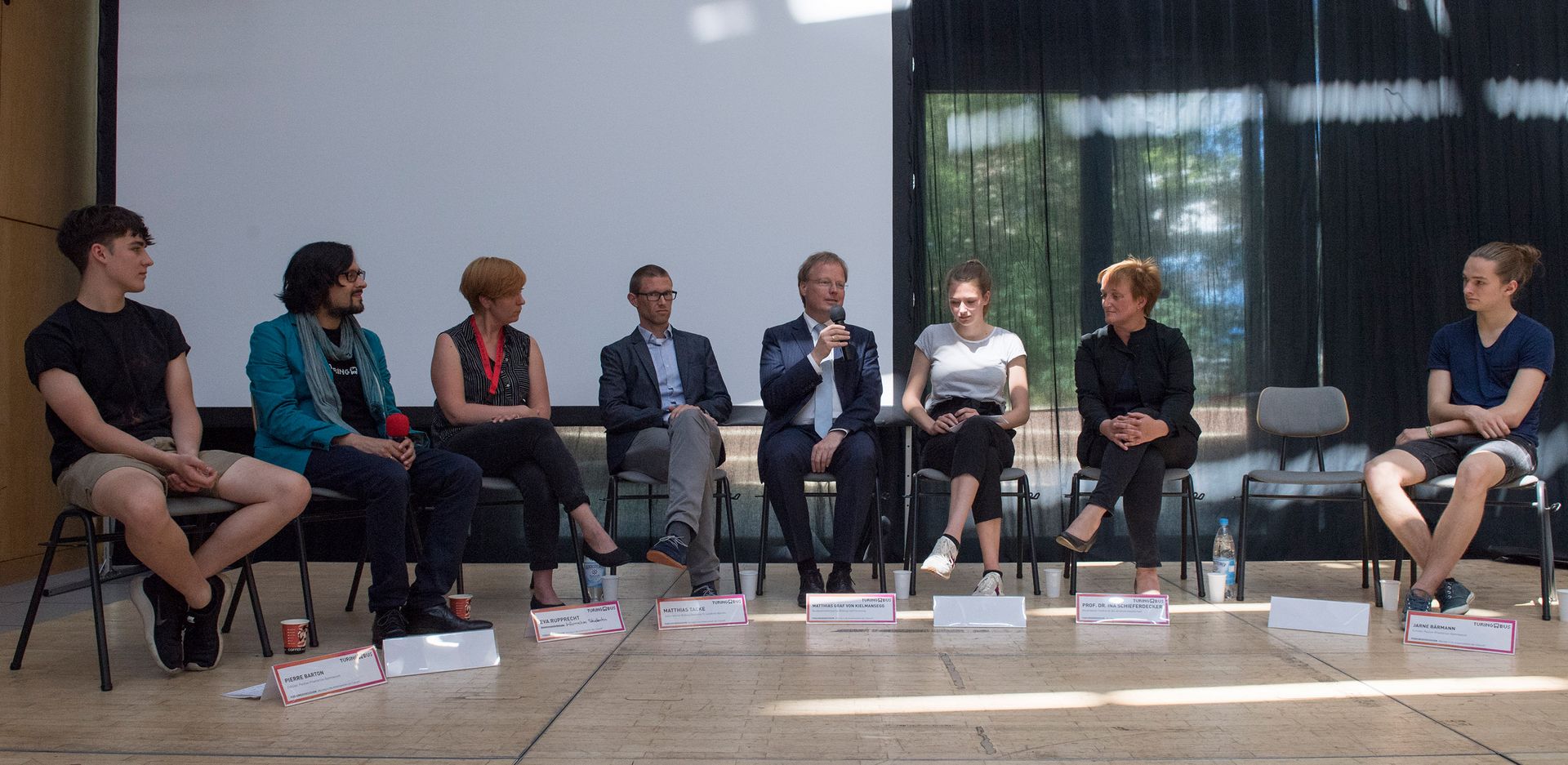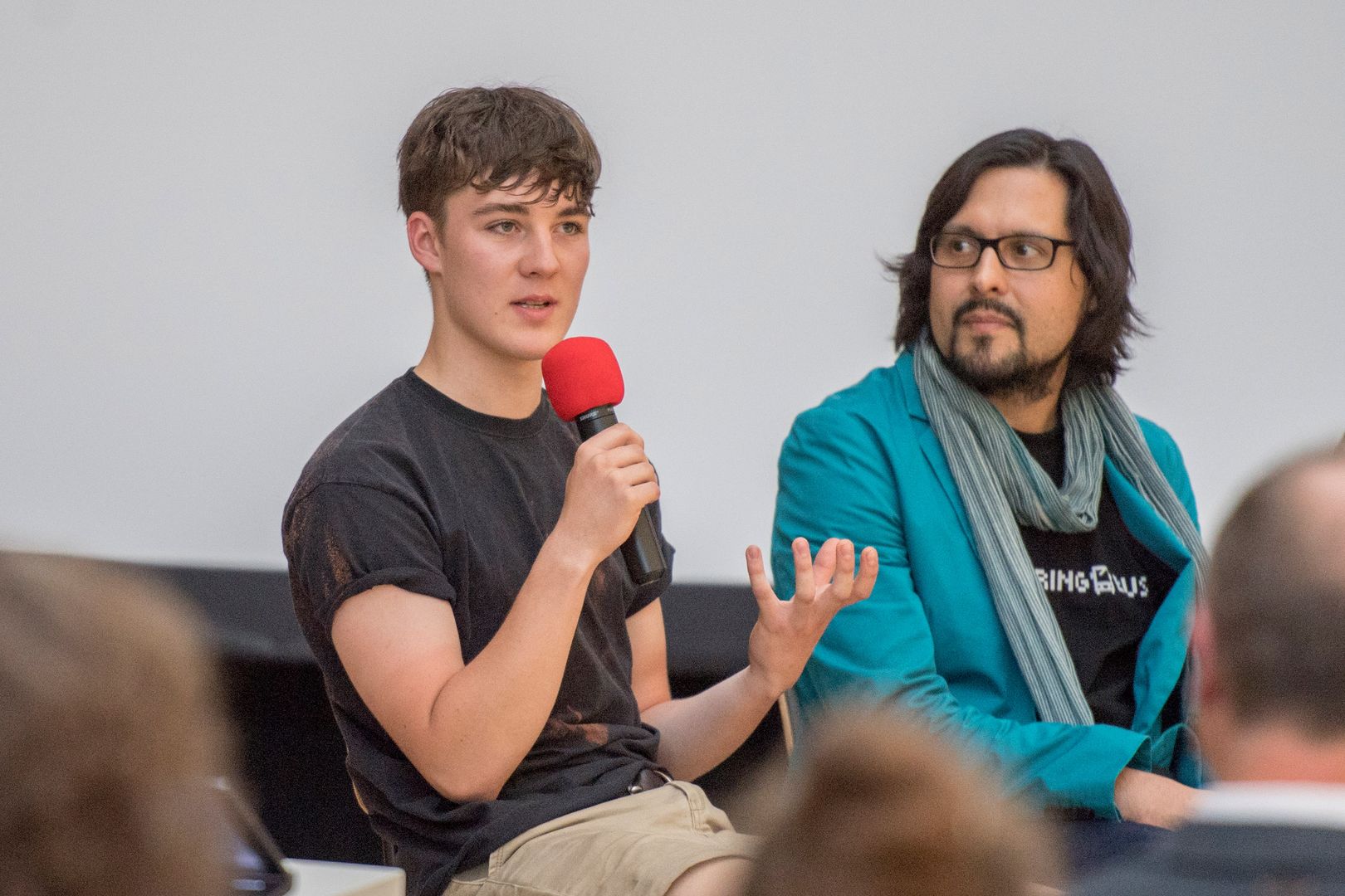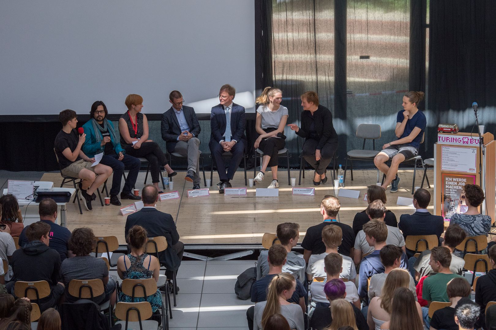 Zum Auftakt der Tour in Bernau fanden mehrere Workshops statt, die von Expertinnen und Experten unter anderem der GI, des Fablab Cottbus und des Weizenbaum-Instituts für die vernetzte Gesellschaft geleitet wurden. Sie führten beispielsweise spielerisch ins Programmieren und in die Elektrotechnik ein und diskutierten mit Schülerinnen und Schülern über Ethik und die Rolle von Technik in der Gesellschaft. Anschließend ging es in Vorträgen und einer Diskussionsrunde (Thema: „Mündig in den Arbeitswelten der Zukunft“) um zentrale Fragestellungen rund um die Arbeitswelten der Zukunft: Welchen Einfluss haben Daten und Algorithmen auf unser zukünftiges Arbeiten? Wie können lokale Initiativen und Unternehmen Kenntnisse über neue Technologien erwerben? Und wie können Jugendliche und junge Erwachsene die Arbeitswelten der Zukunft gerade auch in ländlichen Regionen mitgestalten?