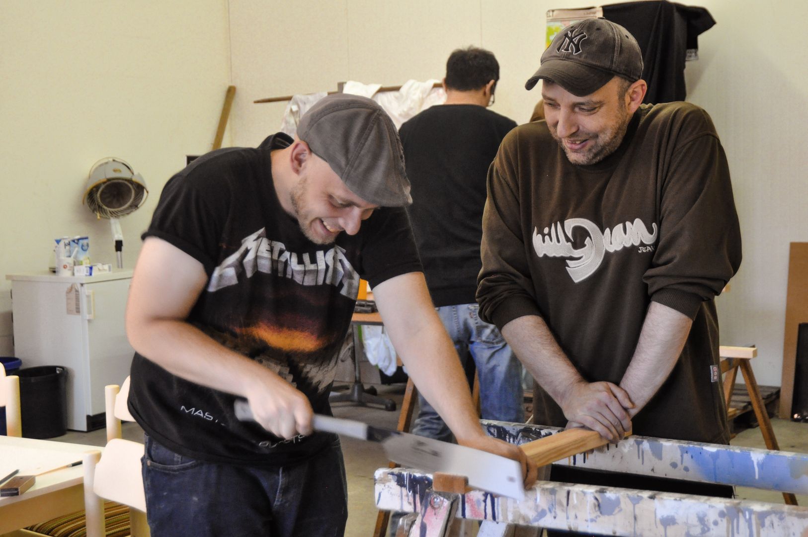 Wie schon im Sommer, konnten die Teilnehmer*innen auch hier wieder zwischen sieben verschiedenen Workshopangeboten wählen. Zur Auswahl standen zwei Handyfilm- und ein Rapworkshops sowie drei neue Workshopformate Fotografie, Theater und T-Shirt-Druck. Zur Vorbereitung auf die Abschlussveranstaltung am 31.10. in der :DASA in Dortmund, konnten auch einige Jugendliche Ausstellungsmöbel aus Holz zusammenzimmern, auf denen die entstandenen Werke bei der Ergebnispräsentation ausgestellt werden.