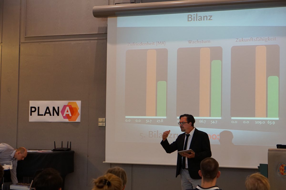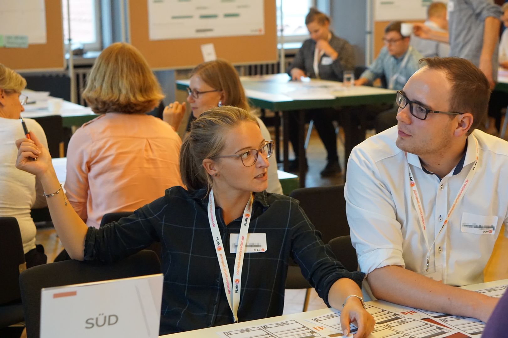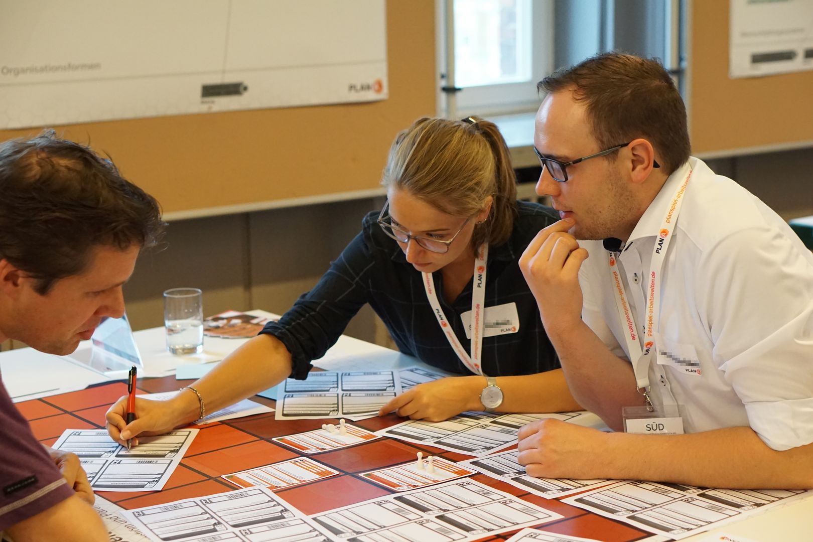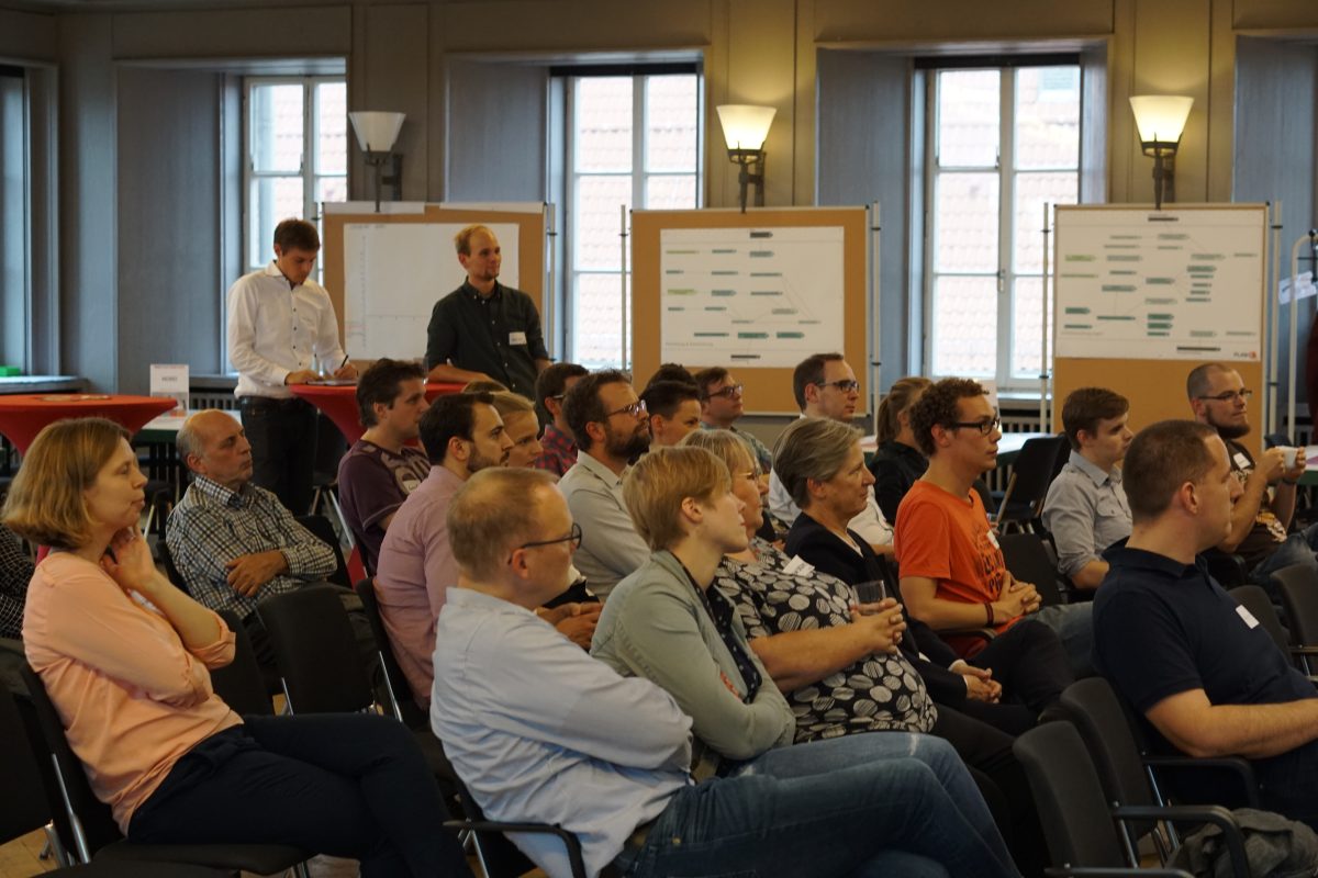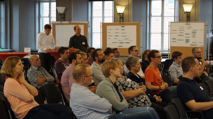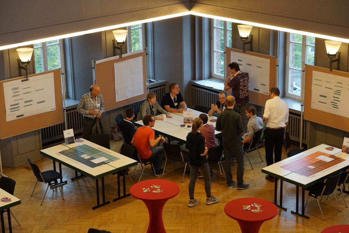 Im Braunschweiger „Haus der Wissenschaft“ entwickelten die Teilnehmerinnen und Teilnehmer in verschiedenen Gruppen Konzepte für die Arbeit der Zukunft. Dabei spielte die Ressourcenplanung eine große Rolle: In Themenfeldern wie „Tradition und Nachhaltigkeit“, „Führung und Unternehmenskultur“, „Soziales und Miteinander“ und „Technologie und Innovation“ planten die Firmenvertreterinnen und -vertreter, wie Geld und personelle Kapazitäten am besten eingesetzt werden können.