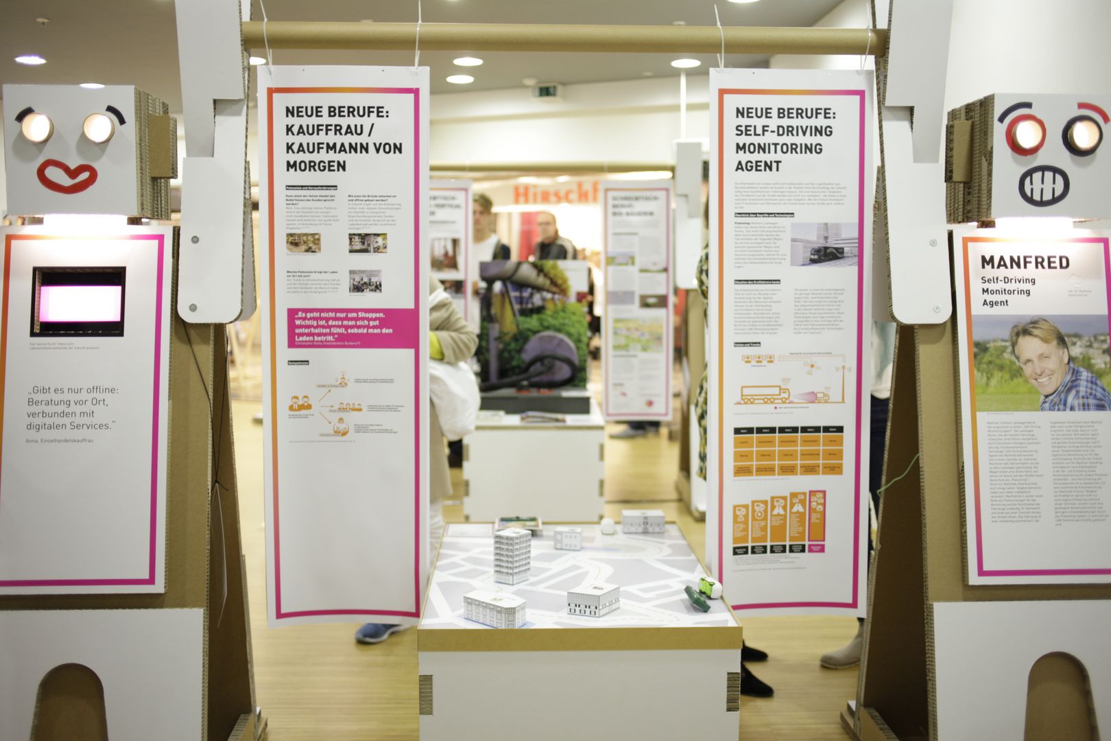 In Form von Pop-up-Dialogcentern begibt es sich hierzu auf alternative Pfade und erfüllt ehemals leerstehende Ladenlokale mit neuem (Arbeits-)Leben. Ziel des Projekts ist es, Bürgerinnen und Bürgern anhand von interaktiven Exponaten zu zeigen, wie Arbeit in Zukunft aussehen könnte, welche Technologien wegbereitend sein werden und welche sozialen und ökologischen Aspekte zu berücksichtigen sind. Nach der Auftaktstation in Wuppertal kann das gemeinsam vom Collaborating Centre on Sustainable Consumption and Production (CSCP), der Folkwang Universität der Künste und dem Wuppertal Institut für Klima, Umwelt, Energie konzipierte und umgesetzte Projekt in Gelsenkirchen, Hannover, Kiel, Potsdam und Dresden besucht werden.