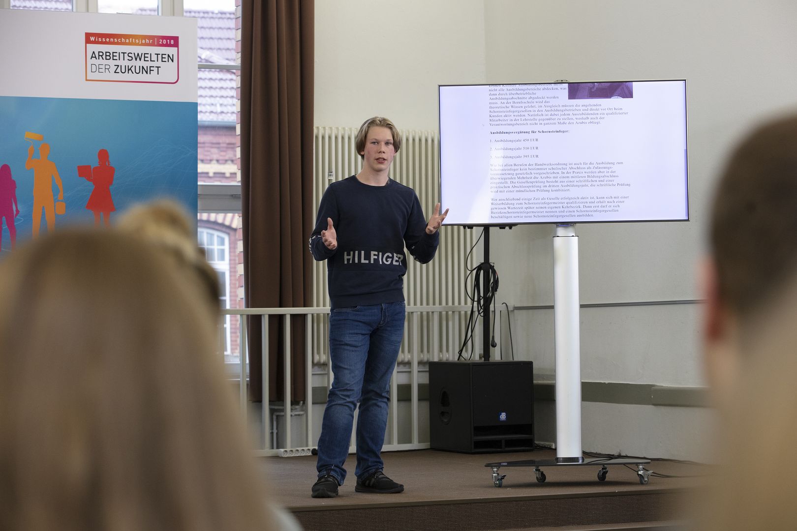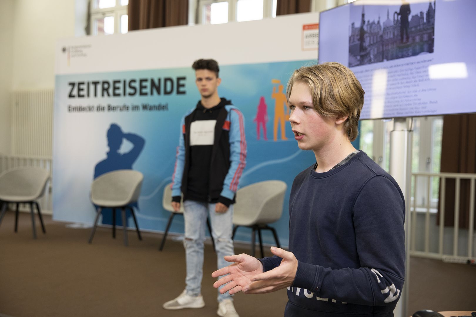 Berliner Schülerinnen und Schüler stellen Ergebnisse von Interviews mit Fachkräften vor