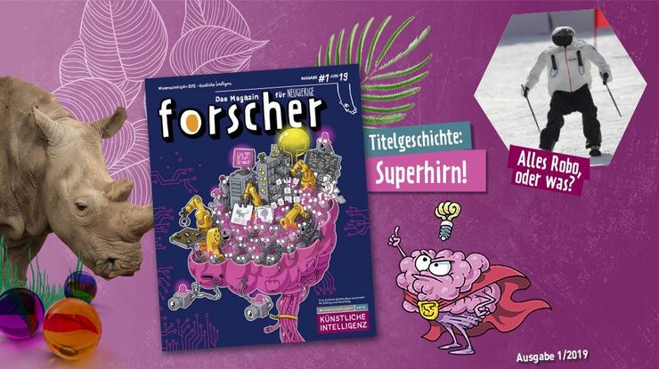wissenshungrige Kinder kommen bei „forscher – Das Magazin für Neugierige” voll auf ihre Kosten: Themen aus Wissenschaft und Forschung werden hier altersgerecht und in abwechslungsreichen Formaten für Acht- bis Zwölfjährige präsentiert. Die neue, kostenfrei erhältliche Ausgabe des preisgekrönten Magazins enthält gleich mehrere Beiträge zum Wissenschaftsjahr-Thema Künstliche Intelligenz – vom Prinzip des maschinellen Lernens bis hin zu den „Astro-Bienen“ auf der Internationalen Raumstation. Darüber hinaus kann die junge Leserschaft auch Spannendes aus der Archäologie, der Biologie und vieles mehr entdecken. Informationen zu Bestellmöglichkeiten finden Sie hier.
