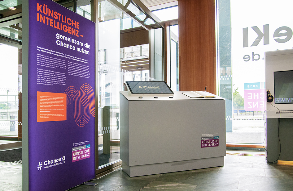 Die Foyerausstellung im BMBF, Kapelle-Ufer 1, 10117 Berlin, lädt Wissenschaftsinteressierte werktags von 9 bis 17 Uhr dazu ein, Künstliche Intelligenz einmal selbst zu erleben und auszuprobieren. Bis Ende des Jahres ist die Ausstellung noch im BMBF zu finden.