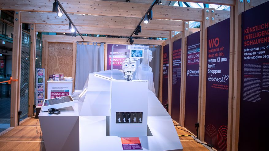 Auch die Chatbot-Intelligenz, ein Gewinner-Projekt aus dem Hochschulwettbewerb im Wissenschaftsjahr 2019 – Künstliche Intelligenz, bei dem junge Forschende in ganz Deutschland ihre Arbeit präsentieren, war beliebt. Im Gegensatz zu dem, was Chatbots normalerweise tun – nämlich Fragen von Menschen zu beantworten – gab dieser Bot Auskunft über seine eigene Existenz als Künstliche Intelligenz. Das KI.XOSKELETT, ein weiteres erfolgreiches Projekt des BMBF-geförderten Hochschulwettbewerbs, konnte sich ebenfalls über regen Zulauf freuen. Exoskelette im medizinischen Bereich werden zur Rehabilitation eingesetzt. Sie ermöglichen Menschen, sich zum Beispiel nach Unfällen wieder eigenständig zu bewegen.