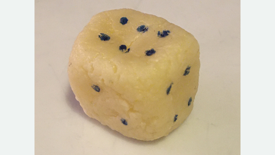 Ich habe meinen Würfel, aus Bioplastik hergestellt, habe aber kein Glycerin verwendet, da Glycerin das Bioplastik biegsam macht, und ich keinen biegbaren Würfel wollte. Nachdem ich diesen mit Händen geformt habe, und trocknen lassen habe, habe ich mit einem Stift die Punkte, die auf einen Würfel gehören, gemalt. Fertig ist mein Bioplastik-Würfel!