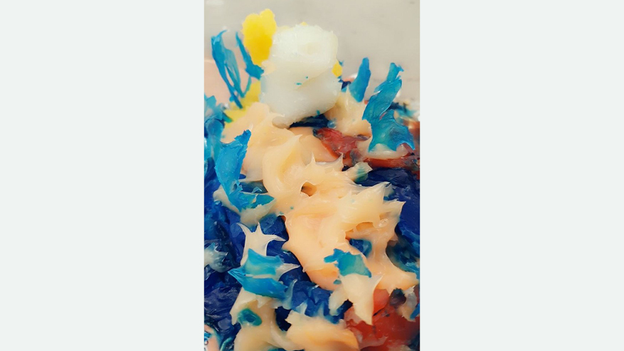 Durch dieses Werk wollen wir auf die Gefahr von Erdöl in unseren Meeren aufmerksam machen. Man sieht hier, wie ein Walross aufgrund des ausgelaufen Erdöls im Meer ertrinkt und sich nicht wehren kann, da es unter Wasser gezogen wird. Außerdem droht es von Wellen links und rechts verschlungen zu werden.