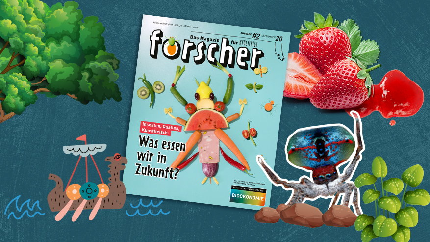 Immer mehr Schweine im Stall, immer weniger Fische im Meer, dazu schrumpfende Lebensräume für wildlebende Tiere und Pflanzen – dazu trägt auch unsere aktuelle Ernährungsweise bei. Der „forscher – Das Magazin für Neugierige“ zeigt in seiner aktuellen Ausgabe, wie unsere Ernährung umweltfreundlicher und nachhaltiger werden kann. Kinder und Jugendliche erfahren mehr darüber, an welchen Alternativen zu heute gängigen Lebensmitteln Forschende in aller Welt arbeiten – von Algenwurst bis Quallenschnitzel.