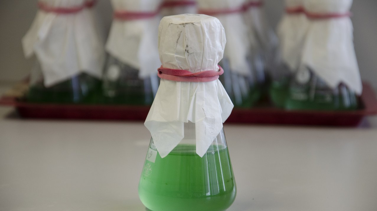 Das Cyanobakterium Synechocystis, eine Mikroalge. Sie ist von Natur aus in der Lage, den Kunststoff Polyhydroxybutyrat, kurz PHB, zu produzieren. Der PHB-Anteil ist mit etwa 10 Prozent jedoch relativ gering. Im Rahmen seiner Promotion ist es Koch nun gelungen, den PHB-Anteil so zu steigern, dass der Prozess für eine industrielle Nutzung interessant werden könnte.