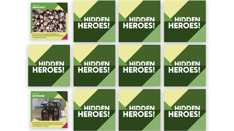 „Hidden Heroes“ zeigt, mit welchen verborgenen Helden der Wandel zu einem nachhaltigen, biobasierten Wirtschaften gelingen kann – und zwar anhand von verschiedensten innovativen Produkten. Eiscreme aus Lupinen! Autoreifen aus Löwenzahn! Dübel aus Rizinusöl! Diese und mehr Paare mussten bei „Hidden Heroes“ bereits gefunden werden.