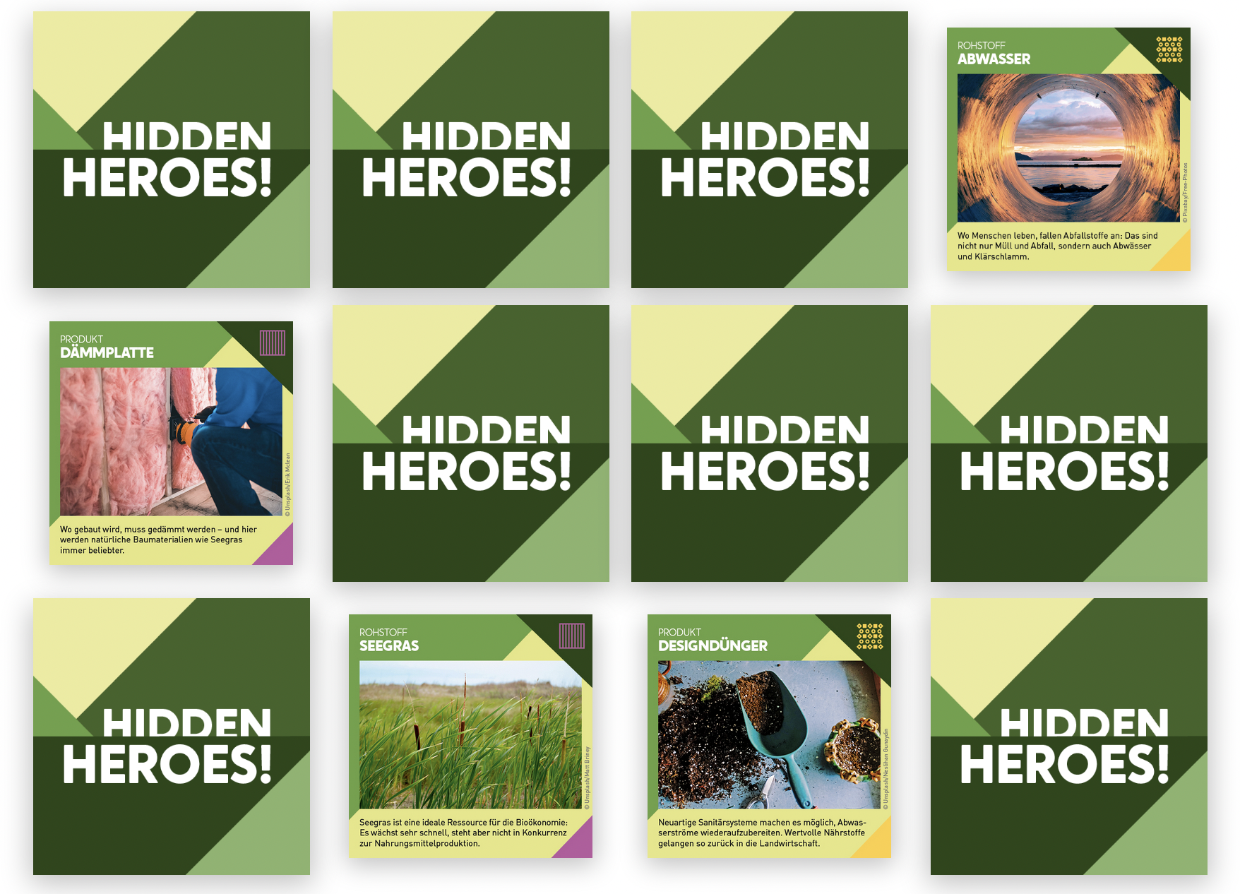 Das Online-Spiel „Hidden Heroes“ hält die Themen des Wissenschaftsjahres in Erinnerung – und zwar wortwörtlich: Wie beim klassischen Memory geht es darum, Paare zu finden. Bei „Hidden Heroes“ bestehen diese allerdings aus pflanzlichen Rohstoffen und dem Produkt, das daraus entstehen kann – etwa Dämmplatten aus Seegras.