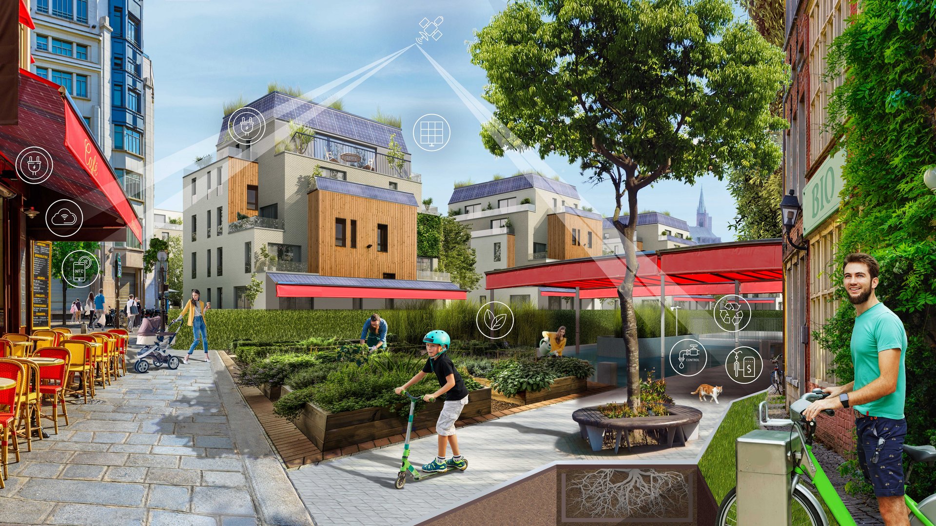Auf der anderen Seite führen fehlende Niederschläge und häufigere Hitzeperioden zu Trockenheit und Dürre im urbanen Raum. Auch dieser Effekt wird nicht nur vom Klimawandel, sondern auch von einem hohen Flächenversiegelungsgrad begünstigt. Die gegebene bauliche und strukturelle Ausgangssituation des urbanen Raumes führt zu spezifischen Mikroklimaten, die in Wärmeinseln besonders hohe Temperaturen aufweisen können. Durch Dürre und Wassermangel verliert das Stadtgrün seine Existenzgrundlage: Städte wie Leipzig haben in den Dürresommern 2019 und 2020 ca. 1.600 Stadtbäume wegen des Wassermangels verloren. Unter dem zweiten Problem, den sich aufheizenden Städten, leiden vor allem die Stadtbewohner.