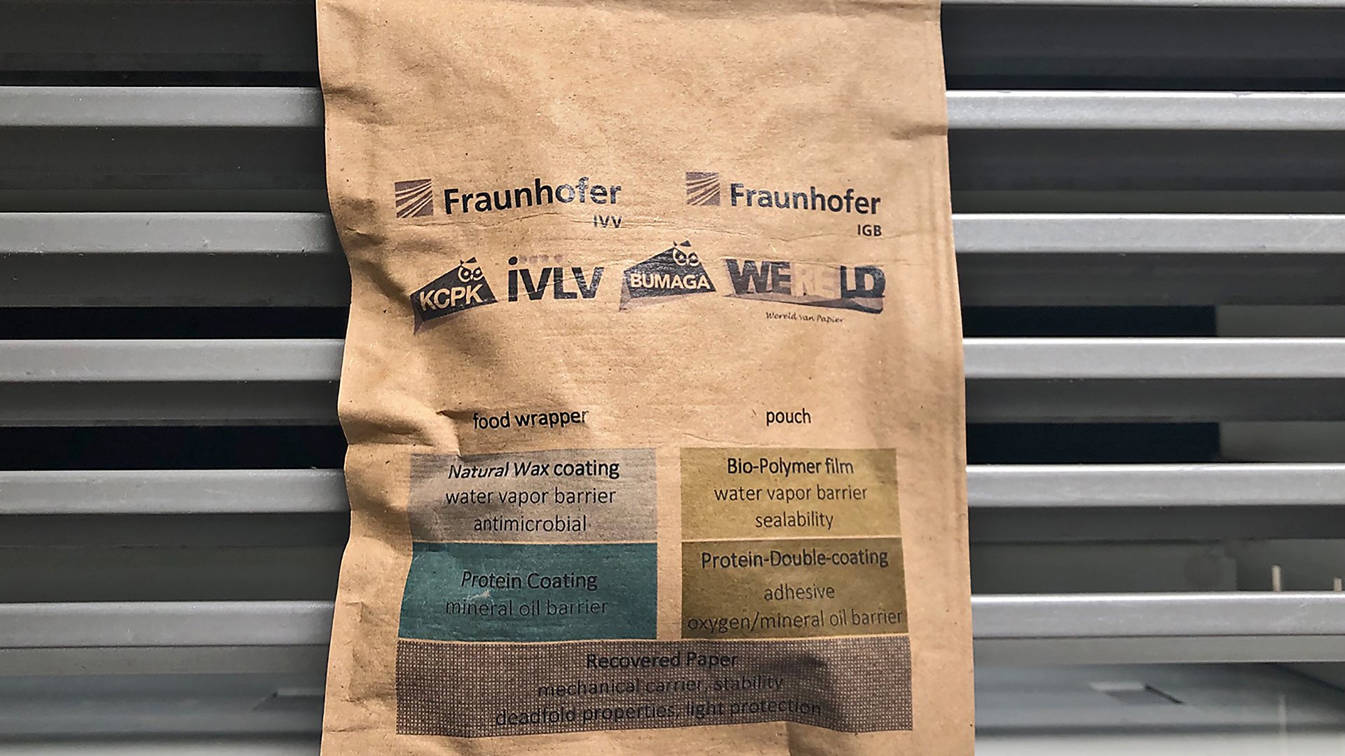 Das Beste aus zwei Welten vereinen: Das ist jetzt Forschenden der Fraunhofer-Gesellschaft gelungen. Die Teams des Fraunhofer-Instituts für Verfahrenstechnik und Verpackung IVV und des Fraunhofer-Instituts für Grenzflächen- und Bioverfahrenstechnik IGB haben ein Verpackungsmaterial entwickelt, das recyclingfähig und biobasiert ist wie Papier, aber die eingepackten Lebensmittel schützt wie eine Kunststofffolie.