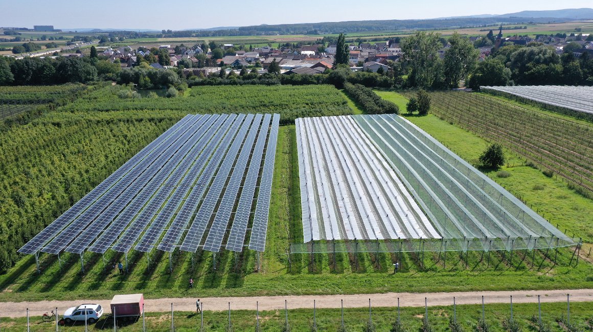 Im Rahmen des Projekts „Agri-PV Obstbau“ wollen Forschende vom Fraunhofer-Institut für Solare Energiesysteme ISE und der BayWa in den kommenden fünf Jahren an acht Apfelsorten den Nutzen der Anbaumethode genauer untersuchen. Ziel des Projektes ist es, die Klimaresilienz im Obstbau zu steigern und eine nachhaltige Apfelproduktion mit zusätzlicher Solarstromerzeugung zu sichern.