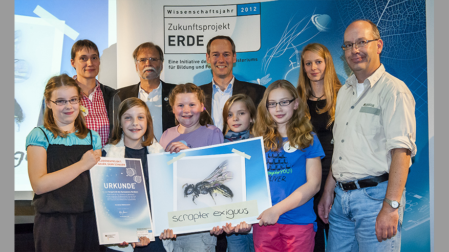 Auch ohne, dass sie zum Geschmack von Honig etwas beitragen, haben Wildbienen eine enorme Bedeutung für unsere Biodiversität. Nicht nur deswegen waren beim „Wildbienenprojekt” Interessierte aufgerufen, sich zu Bedeutung und Lebensweise von Wildbienen zu informieren und den gefährdeten Insekten ein neues Zuhause zu gestalten. Unter dem Motto „Erst bauen, dann schauen!“ begann im Mai eine Mitmach-Aktion zur Bedeutung urbaner Biodiversität. Eingereicht wurden Fotografien von über 200 selbstgebauten Bienenhotels. Das Siegerteam, eine niedersächsische Schülergruppe, wurde sogar Namensgeber einer neu entdeckten Bienenart namens „Scrapter exiguus”.