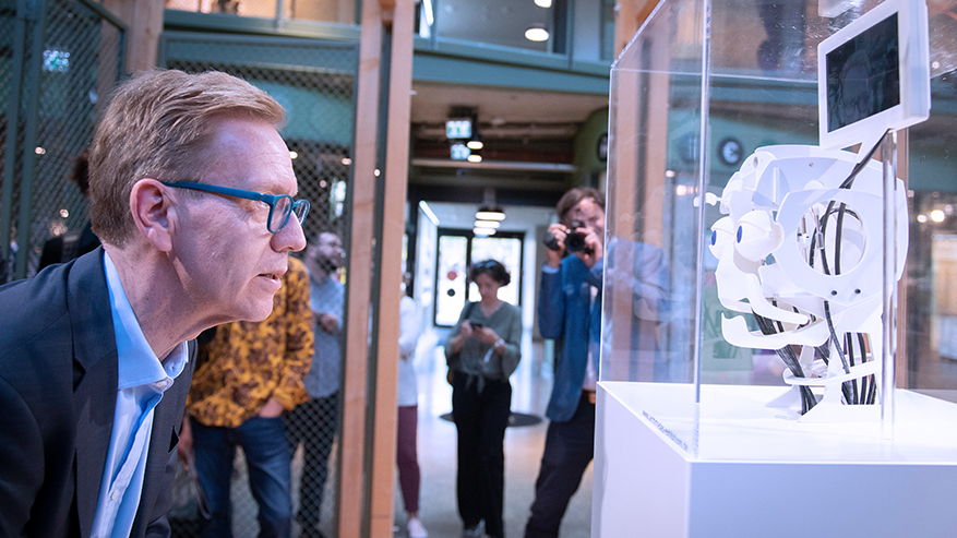Wissenschaft zum Anfassen. Künstliche Intelligenz zum Ausprobieren. Und das jenseits der bekannten Denk- und Vorstellungsmuster im geschichtsträchtigen Kaufhaus Bikini Berlin. In einer Pop-up-Box präsentierte das BMBF im Rahmen des Wissenschaftsjahres aktuelle „Mode“-Themen, die weit über die Saison hinausreichten: Die Chancen und Herausforderungen, die sich aus der verstärkten Interaktion von Mensch und Maschine ergeben. Ünterstützt von Hochschulen und außeruniversitären Forschungseinrichtungen entstand so eine spannende Kollektion aktueller KI-Forschung. In der Ideenschmiede KI luden Exponate zum Mitmachen, Ausprobieren und Nachfragen ein und präsentierten die KI-Technologien, die im Berufsleben, in der Freizeit, in Schule, Ausbildung, Sport, Medien und Kultur schon heute unser Verhalten und unsere Arbeits- und Denkprozesse verändern.