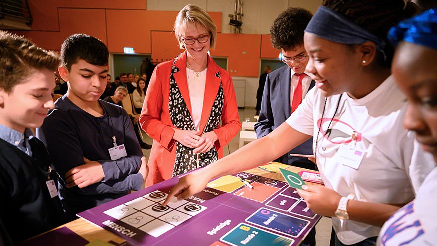 Die Jugendaktion im Wissenschaftsjahr 2019 widmete sich im wahrsten Sinne des Wortes spielerisch einem speziellen Teilgebiet der Künstlichen Intelligenz: dem Maschinellen Lernen. Wie eine Maschine lernt, konnten die Spielerinnen und Spieler beim Brettspiel „Mensch, Maschine!“ erfahren. Das Spiel steht samt pädagogischem Begleitmaterial kostfrei zum Download zur Verfügung.