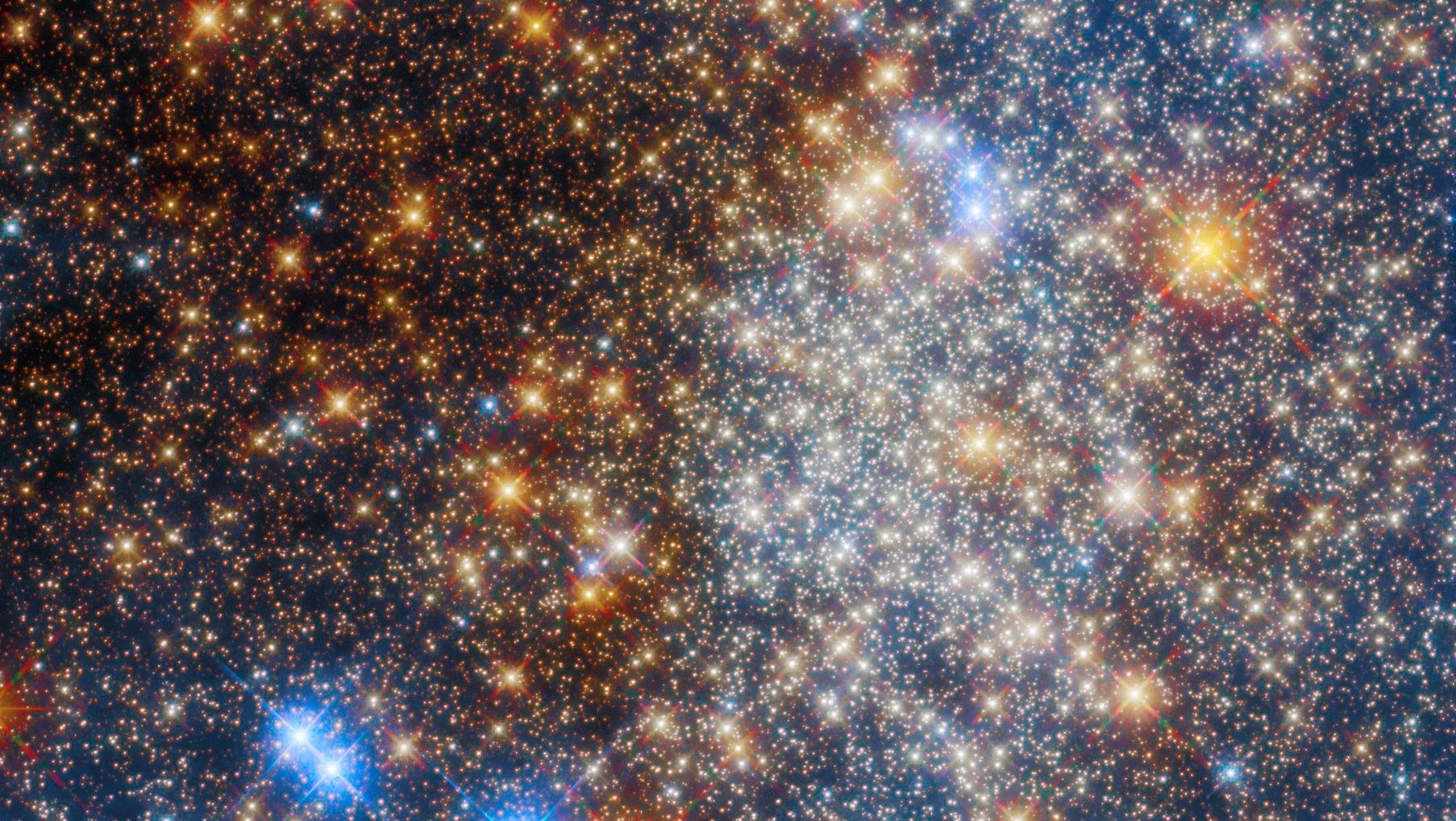 Doch nicht alle Sterne auf dem Bild sind wirklich Teil des Sternhaufens. Die im Bild hellsten rötlichen Sterne sind vielfach größer als die Sonne – die meisten von ihnen sind uns näher als Terzan 12. Die blauen Sterne sind zu jung, um zum Kugelsternhaufen zu gehören, sie liegen lediglich in derselben Beobachtungslinie.