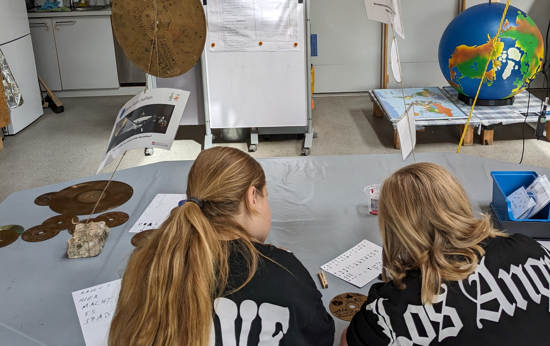 Warum kreisen die Planeten um die Sonne und welche gibt es überhaupt? Was ist ein Schwarzes Loch und was hat das alles mit der Schwerkraft zu tun? Wie kommen die Astronauten und Astronautinnen auf die ISS und was machen sie, wenn mal was kaputt geht? Mit Helle & Leum, den Forscher*geistern des HELLEUM können vor allem Vor- und Grundschulkinder ab September 2023 forschend und entdeckend in die Welt jenseits der Erde tauchen, ins HELLIVERSUM, überALL! Vormittags – mit Schulklassen im Rahmen eines Workshops, nachmittags mit Freunden und Familien: Jeder ist im HELLIVERSUM willkommen. In Form eines interaktiven Tüfteltheaters mit dem Titel „Der ko(s)mische Ausflug“ bietet das HELLIVERSUM ab Oktober 2023 ein mobiles Angebot für Grundschulen und andere Bildungseinrichtungen an.
