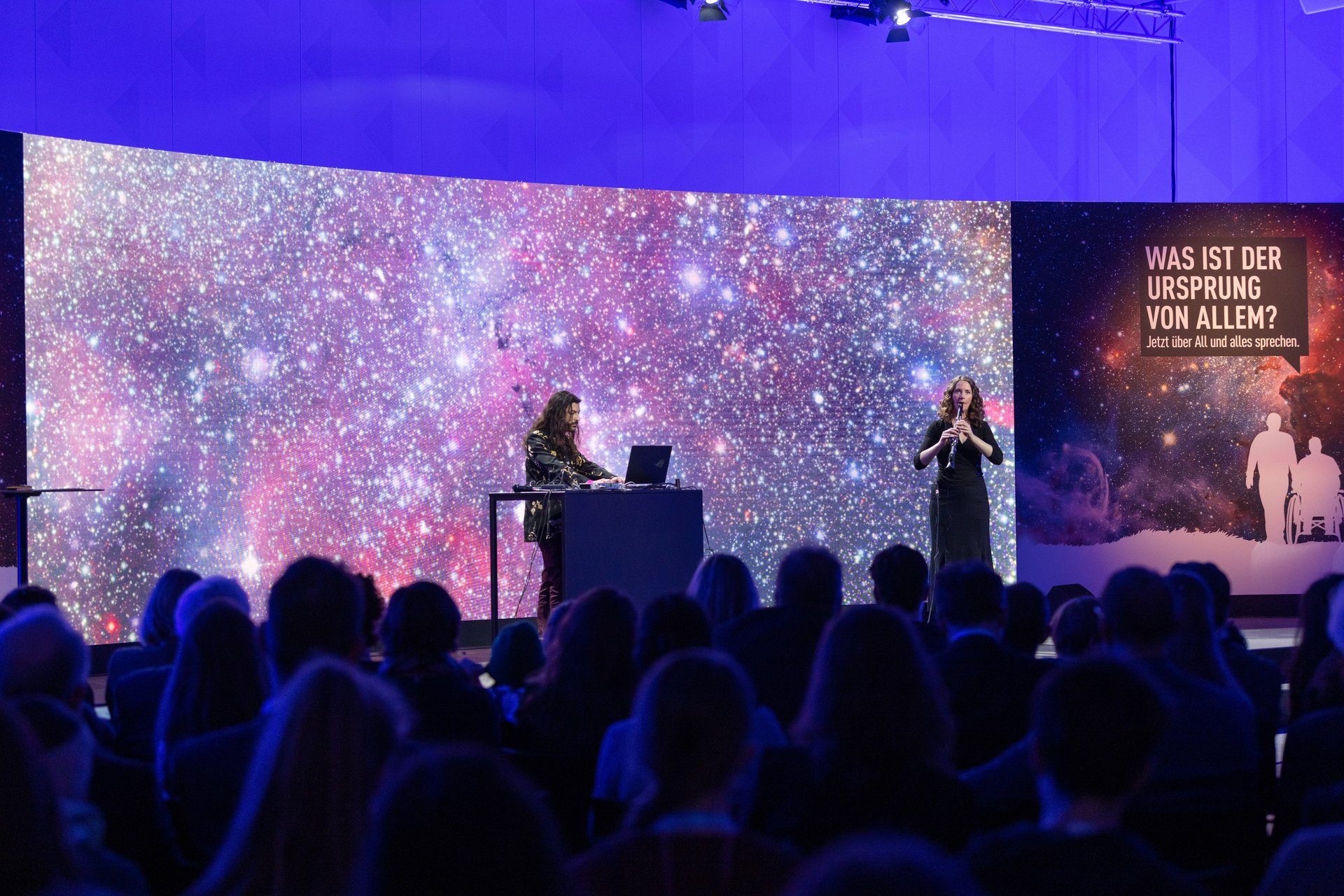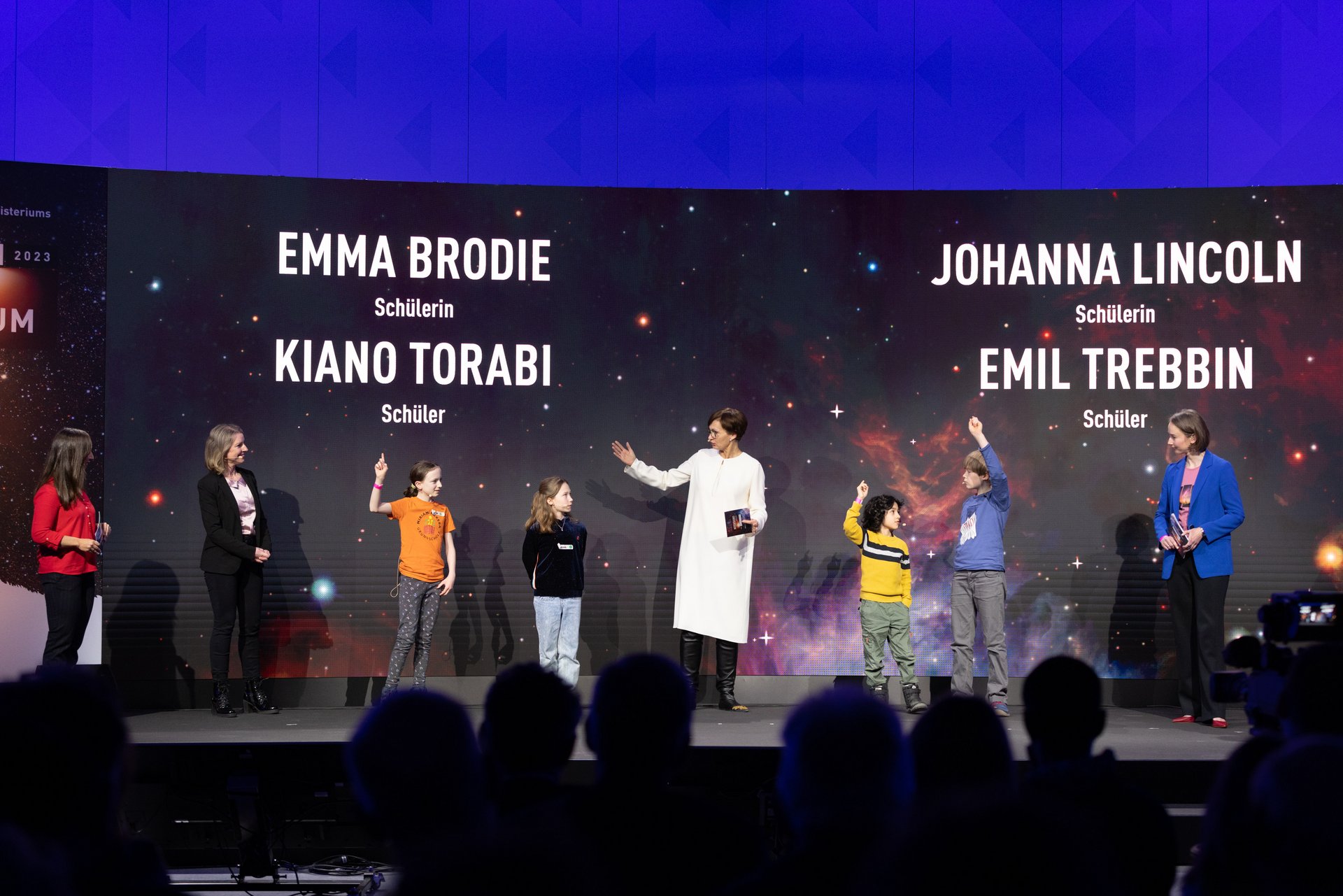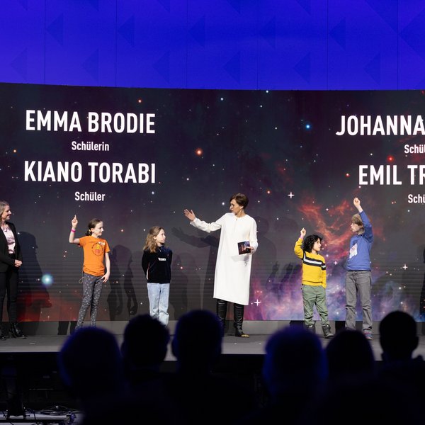 Einblicke in die Sicht der jungen Generation auf das Universum gaben Schülerinnen und Schüler, die in einem Workshop ihre Vorstellung von unserem zukünftigen Leben erarbeitet hatten und diese nun auf großer Bühne vorstellten.