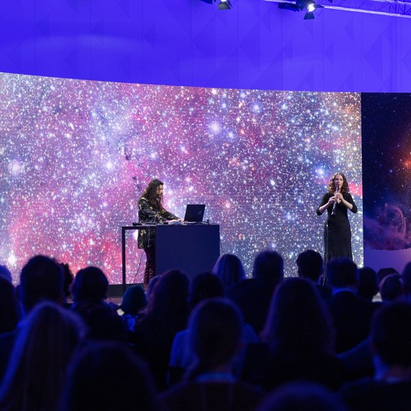 Darüber hinaus erwartete die Zuschauenden ein Einblick in die Welt der großen Teleskope, Kunst von Luis Calçada, dem Datenvisualisierungskünstler der ESO (Europäische Südsternwarte), und eine musikalische Reise ins All.