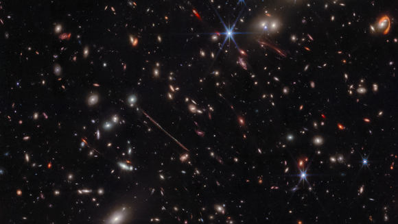 Nur 300 Lichtjahre vom Schwarzen Loch im Zentrum unserer Heimatgalaxie entfernt liegt ein turbulentes Sternentstehungsgebiet. Das James-Webb-Teleskop hat einen Blick dorthin geworfen – und gewaltige Wasserstoffwolken sowie seltsame Strukturen im Gas entdeckt.