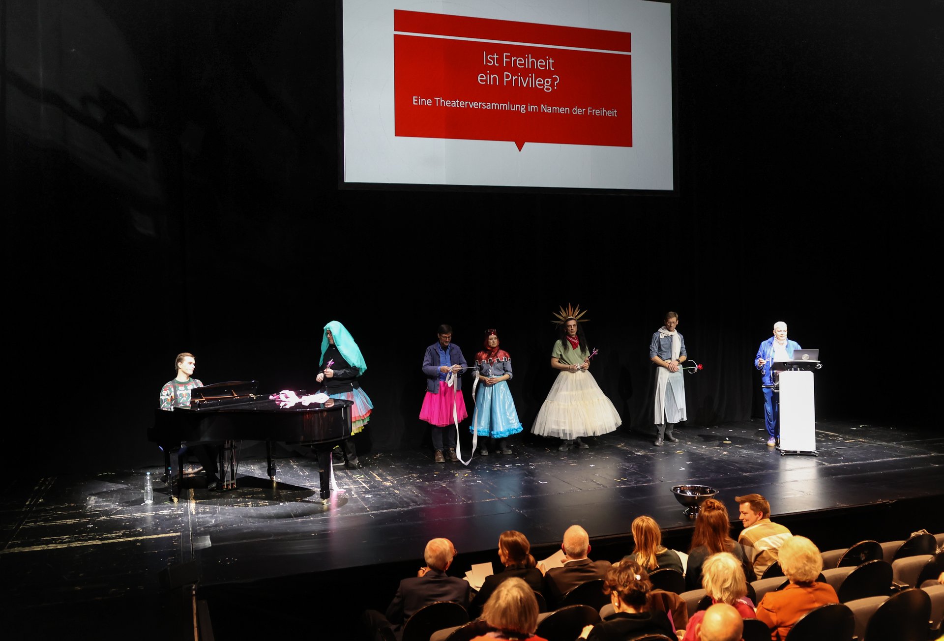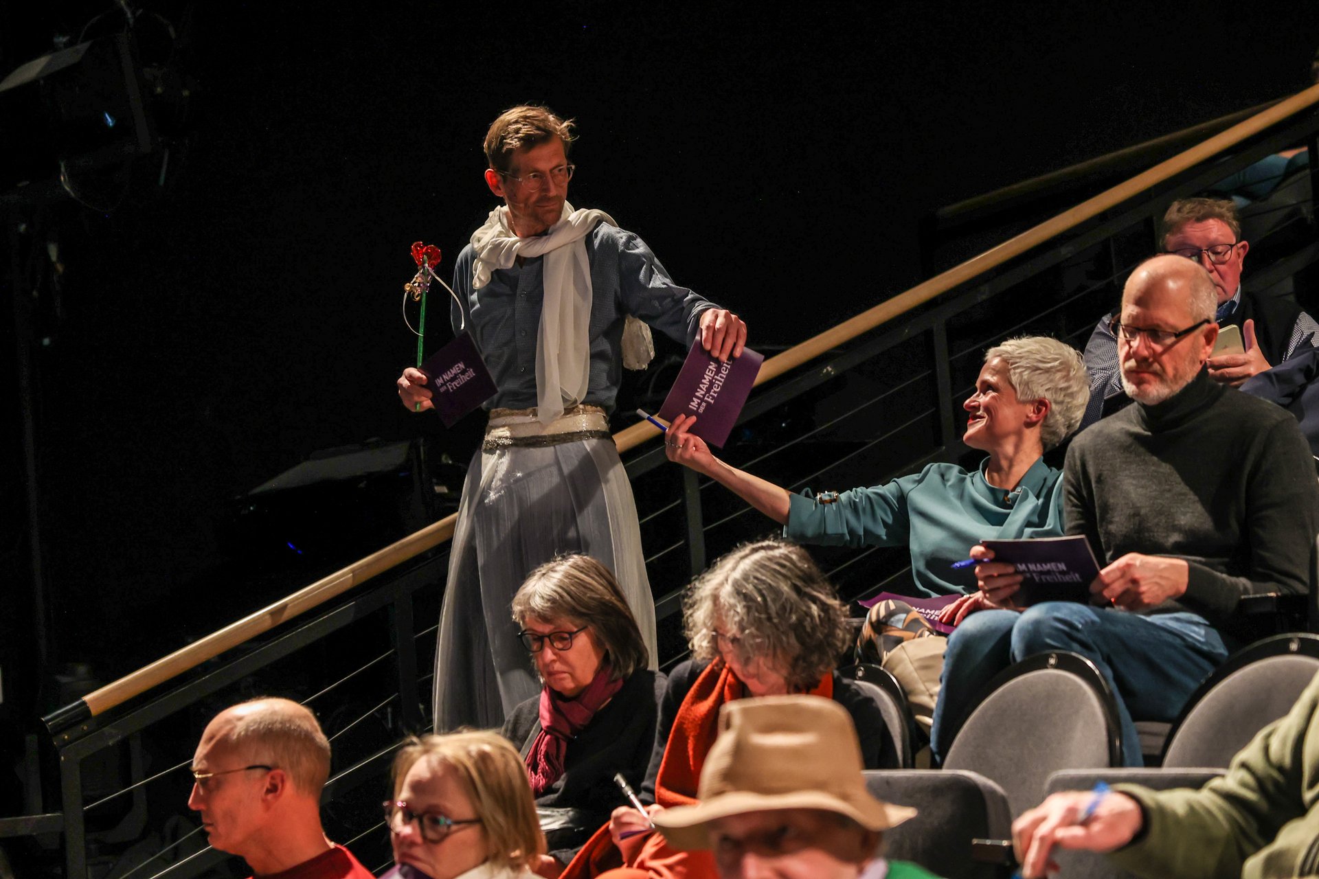 Nach Stationen in Hamburg, Cottbus, Halle, Frankfurt am Main, Rostock und München fand die siebte und letzte Theaterversammlung des Projekts „Im Namen der Freiheit“ in Düsseldorf statt.