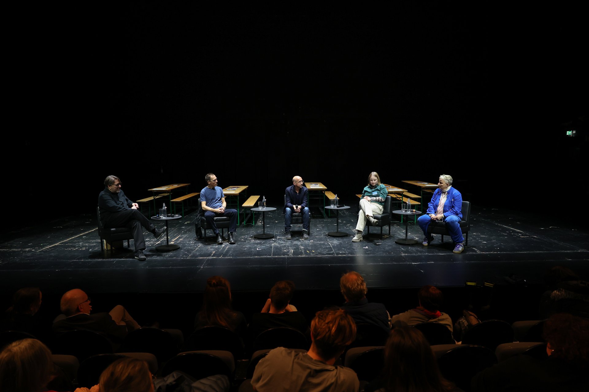Die sich anschließende Fishbowl-Diskussion wurde moderiert von Thorsten Logge, dem wissenschaftlichen Leiter des Projektes „Im Namen der Freiheit“. An den Diskussionen beteiligten sich auch die Studierenden des Projekts „Meine Freiheit – Deine Freiheit“ der Bürger-Uni der Heinrich-Heine-Universität Düsseldorf, die gemeinsam mit Prof. Dr. Stefan Marschall und Daniel Hagemann ihre Forschungen zur Freiheit im Foyer des Theaters zeigten.