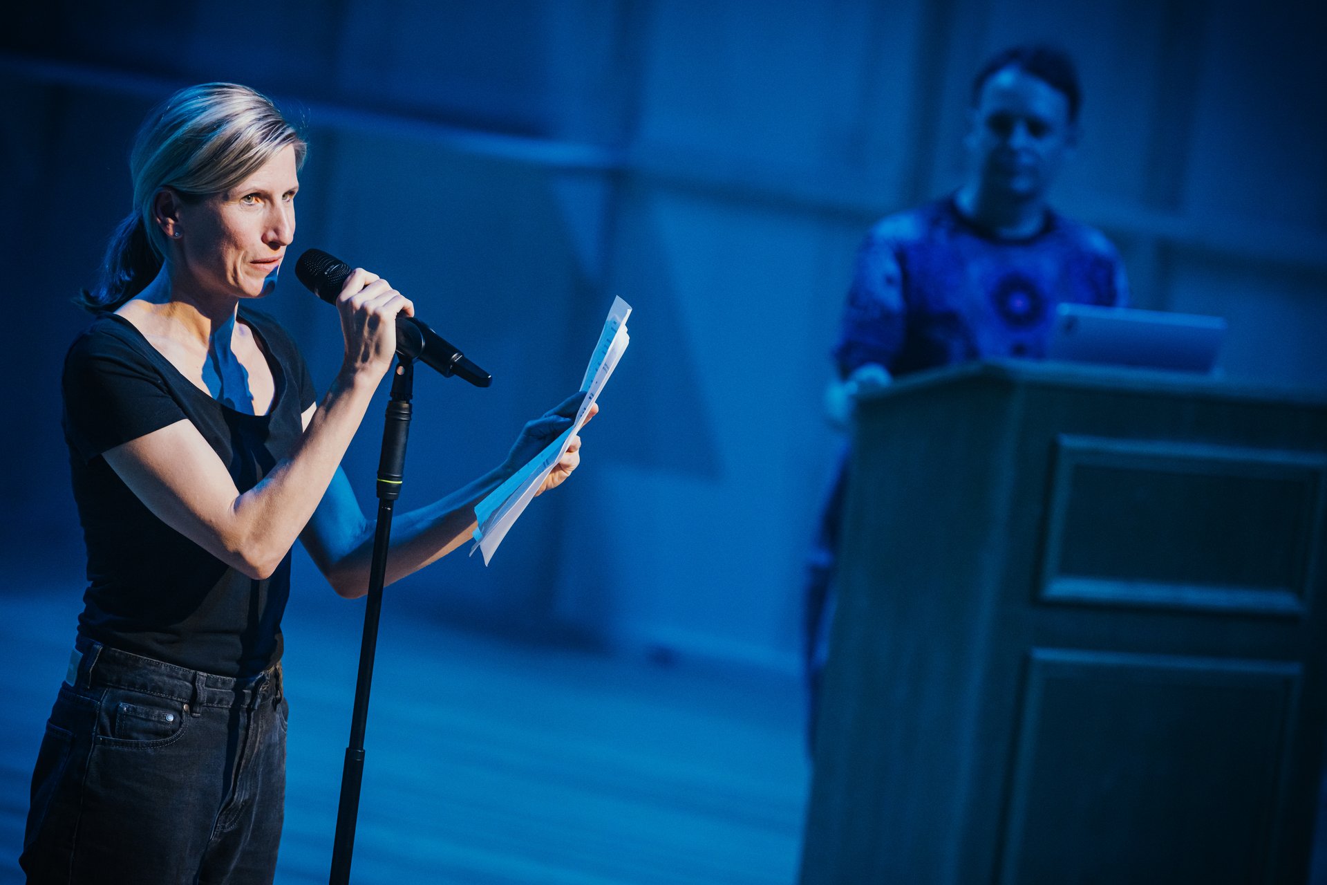Nach einem szenischen Auftakt von Katharina Brankatschk und Harald Höbinger, der den faustischen Konflikt um den Sinn der Wissenschaft als eine Frage von Konditionierung des Bewusstseins interpretierte, betrat der KI-Forscher Joscha Bach die Bühne und begeisterte das Publikum mit einem komplexen, 40-minütigen Vortrag, der die klare Unterscheidung zwischen Mensch und Maschine auf der Basis von Bewusstsein und Geist als einem agentischen Strukturprinzip schrittweise demontierte.