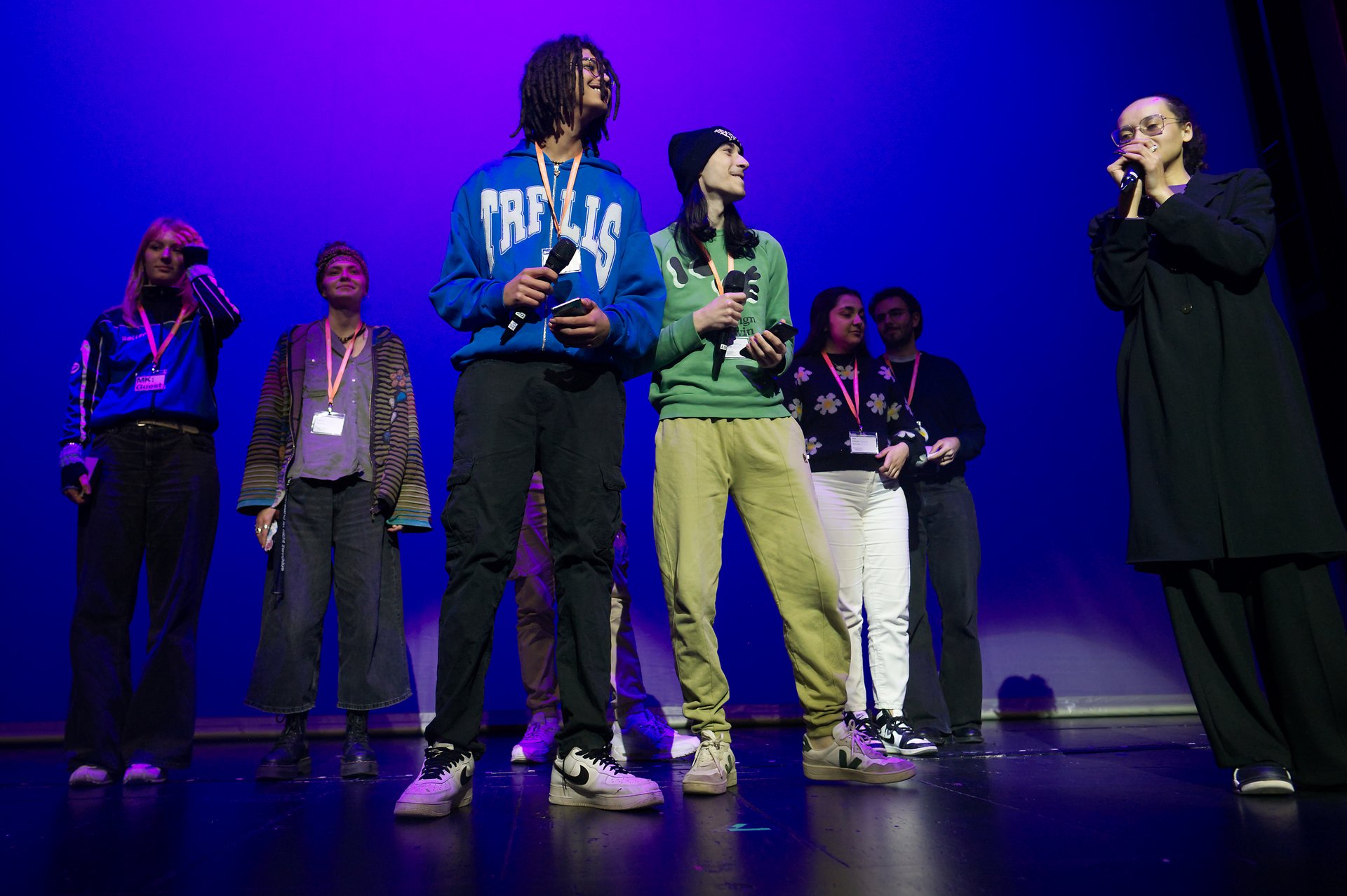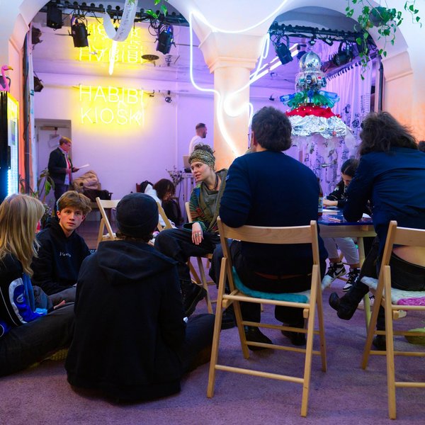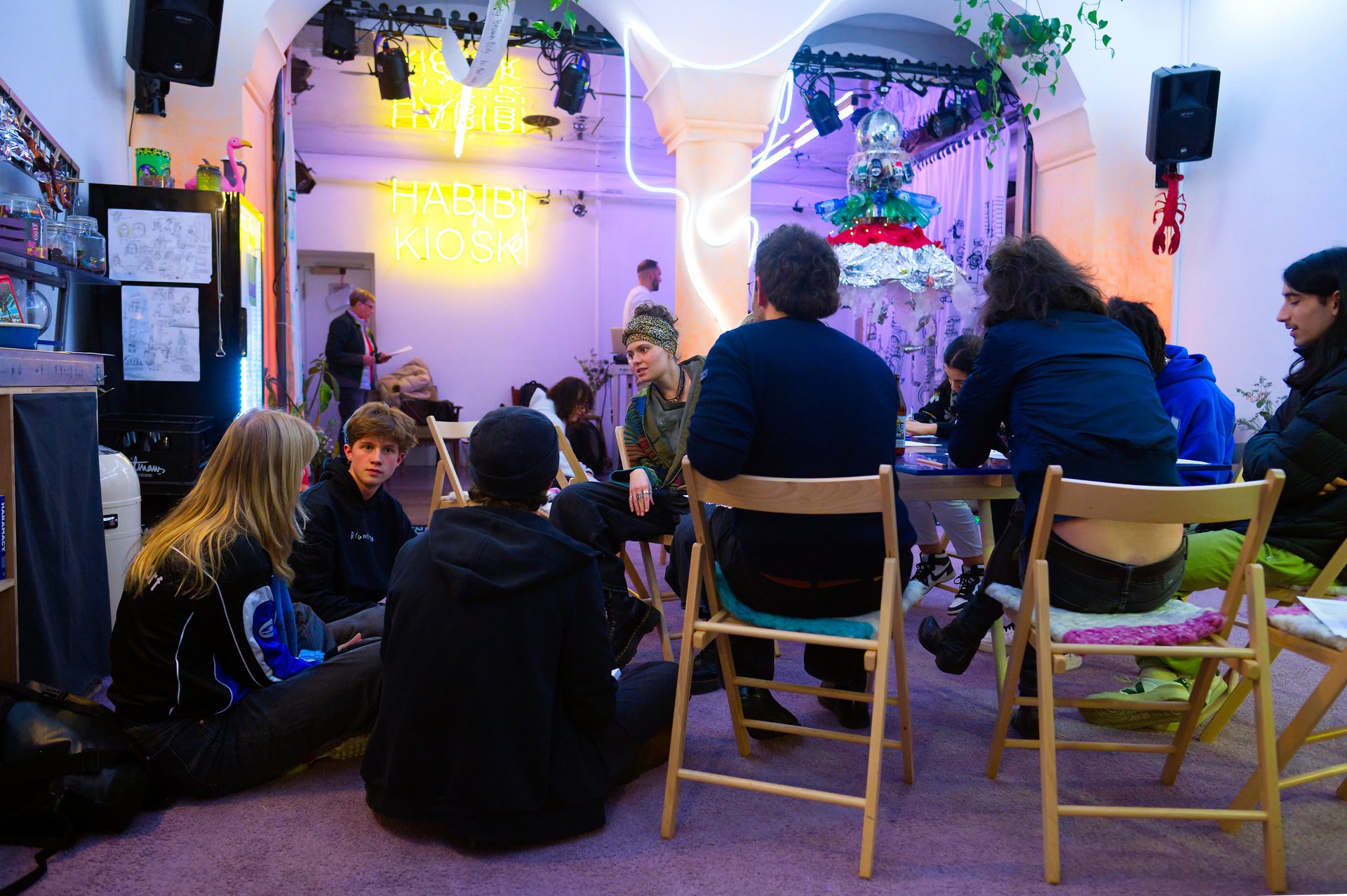 Die Theaterversammlung in den Münchner Kammerspielen zielte auch darauf ab, die Vorstellungen von Freiheit aus der Perspektive junger Menschen auf die Bühne zu bringen. Gündalein hatte hierfür bereits am Nachmittag mit 16 Menschen im Habibi-Kiosk – einer offenen Spielstätte der Kammerspiele in der Münchner Maximilianstraße – einen Workshop veranstaltet. Die Stimmen und Texte der Jugendlichen waren durch den couragierten Support Gündaleins am Abend auf der Bühne zu erleben: „Sie sind wir“, sagte sie.