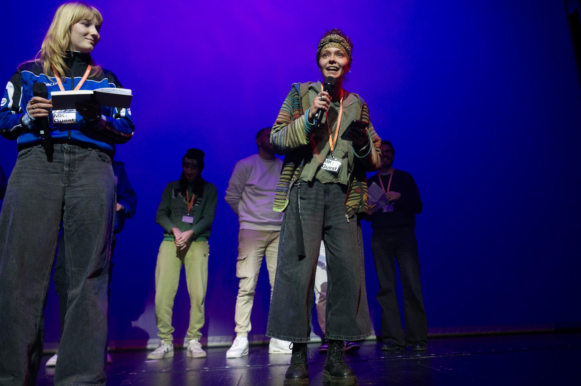 Die anschließenden Tischgespräche mit dem Publikum auf der großen Bühne waren sehr lebhaft, so dass sie erst viel später in der Kantine der Kammerspiele zu einem offenen Ende kamen. Zwei verschiedene Klientele bestimmten den Abend – sowohl auf der Bühne als auch im Publikum: Junge Menschen mit Interesse für die Hip-Hop-Kultur und Menschen jeden Alters mit Offenheit für die Ideen aus der Geisteswissenschaft.
