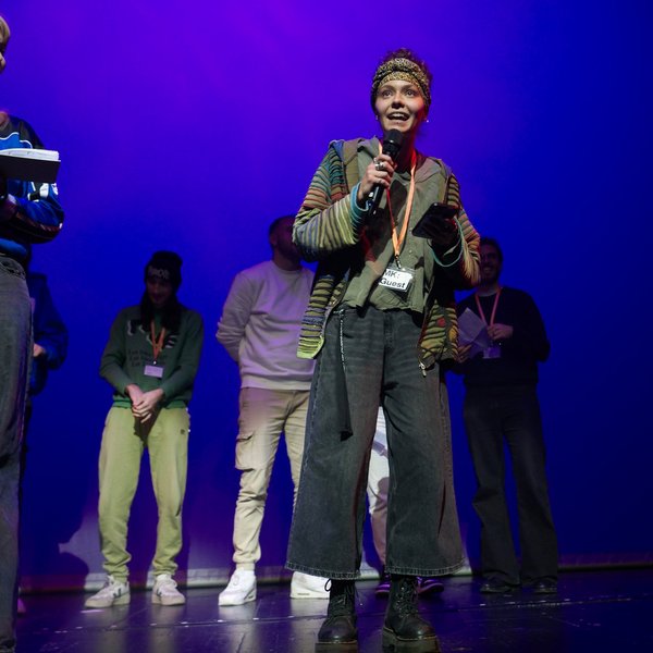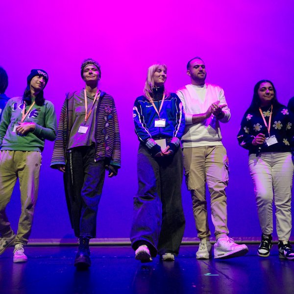 Den Auftakt bei der Theaterversammlung in München machte die Musikerin und Aktivistin Gündalein mit einem Hip-Hop-Beat, ihrem Song „Black Lives Matter“ und einer starken Geste, die den Ton für die Impulse des Abends stiftete. Gündalein erinnerte alle Smartphone-Besitzenden im Theater an die Situation so vieler Menschen im Kongo, die in den Minen nach seltenen Erden – die für das Funktionieren der Handys sorgen – schürfen. „Bitte, schaut, was in der Welt passiert! Wir sind hier so behütet in unserem Deutschland, aber wir müssen wissen, was unser Privileg ist und was in der Welt passiert“, mahnte sie.